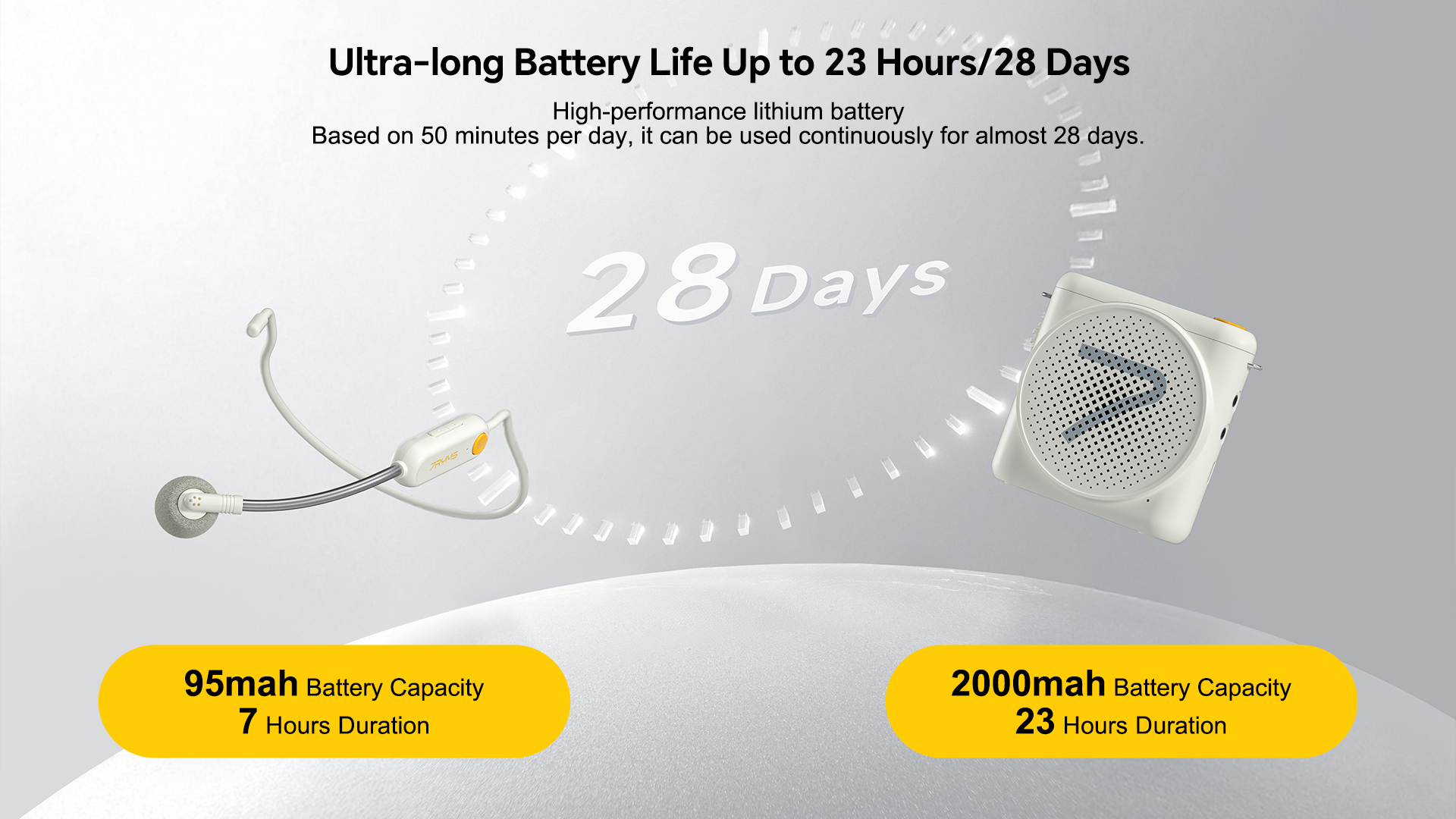7. Ultra-long Battery Life Up to 23 Hours/28 Days