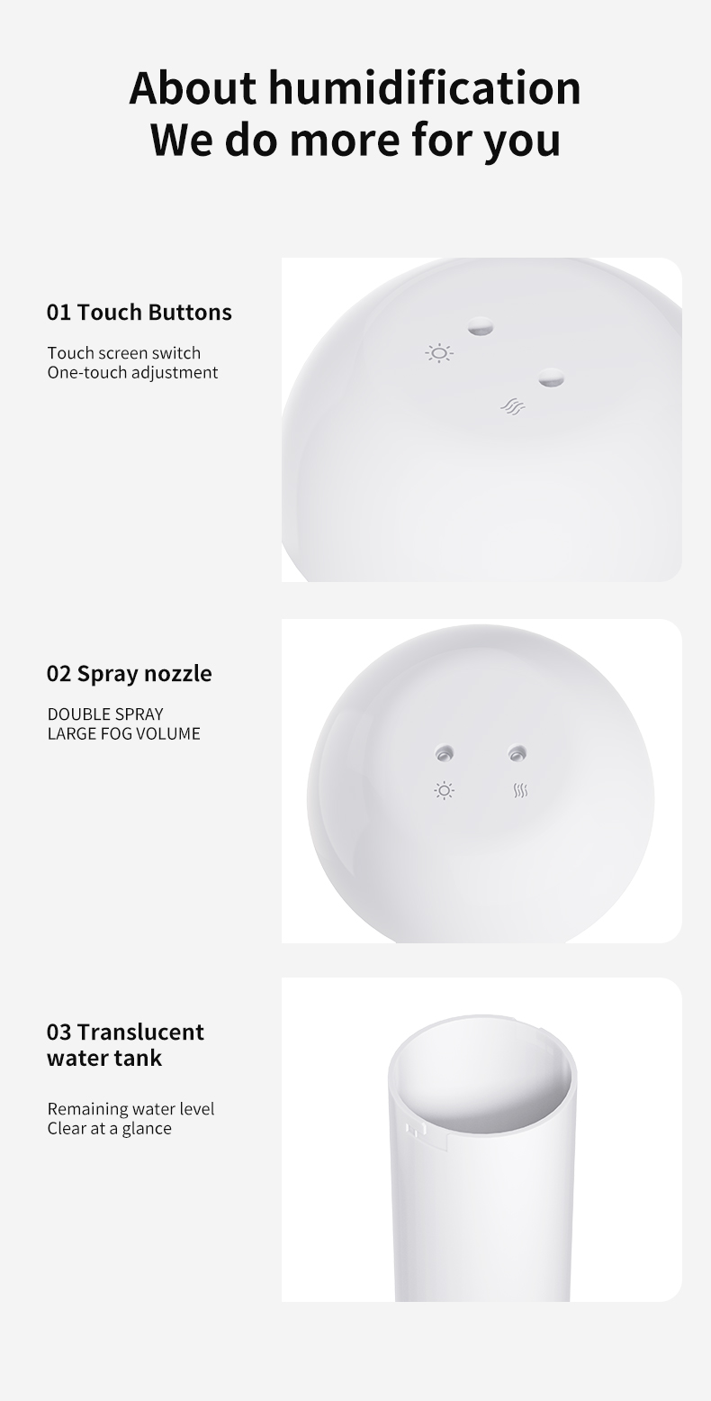 Gifts or Hotel / Hospitality Use: Attractive design and functional humidification + ambient night light make it suitable for gift items or for hotel rooms.