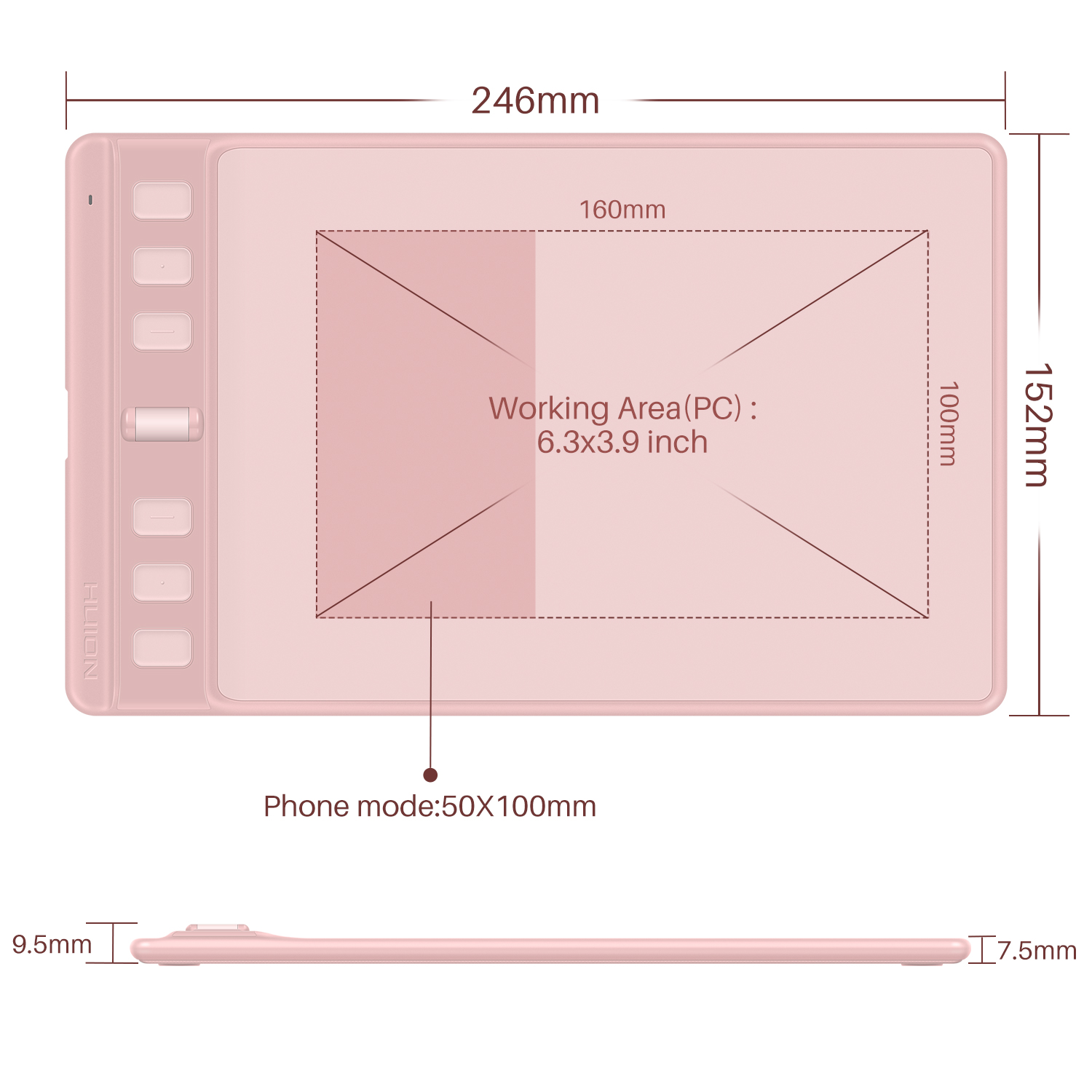 It only measures 7.5~9.5mm in thickness to reduce the user’s wrist discomfort when drawing. Furthermore, it won't occupy much space in user’s bag, making it easy to carry from home to school or office.