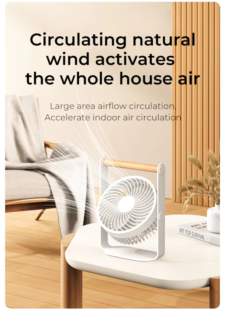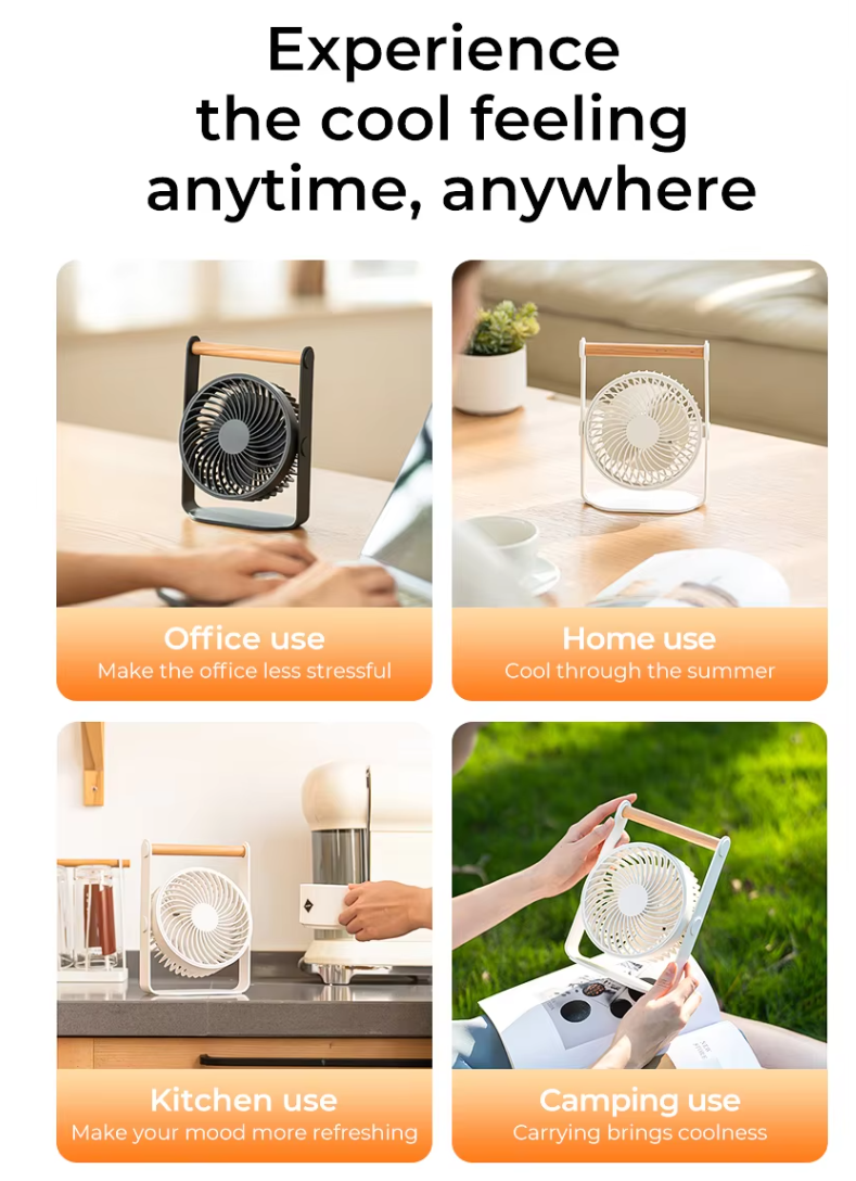 Purpose: This mini USB desk fan is not only designed for daily summer cooling, but also an excellent companion for outdoor activities, travel, and study. It’s especially suitable for students, office workers, and camping lovers.