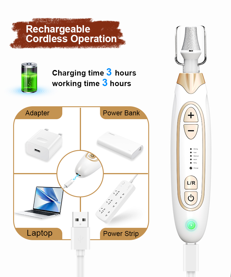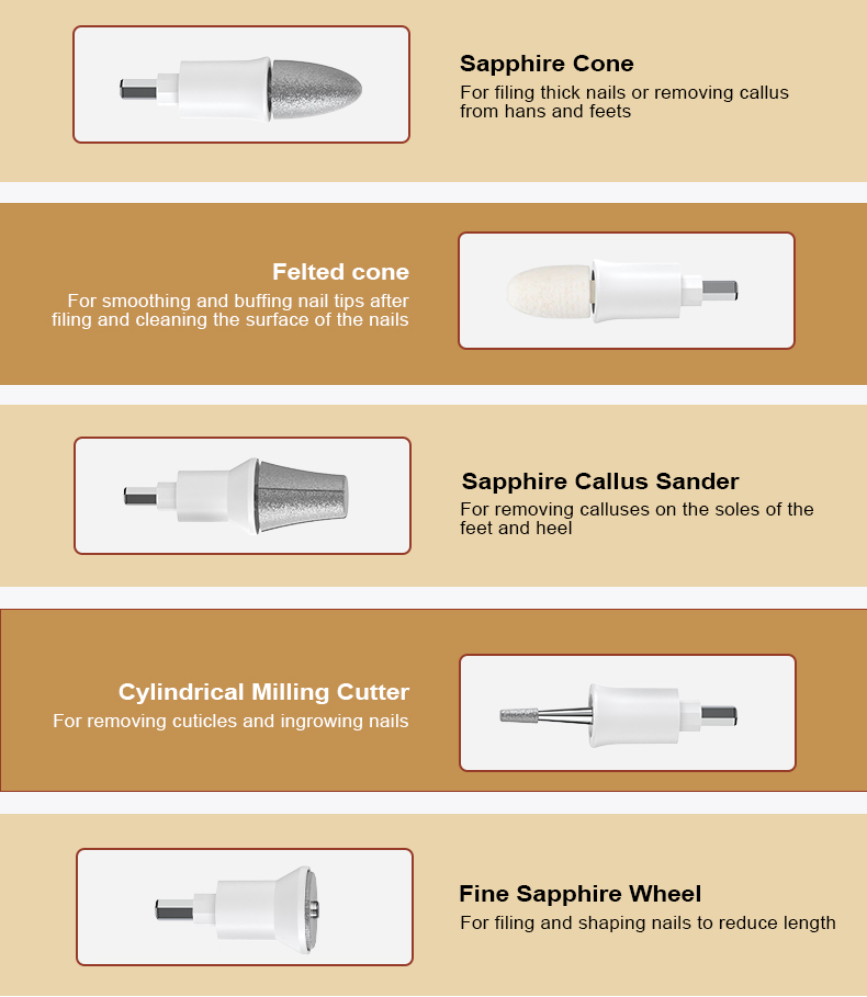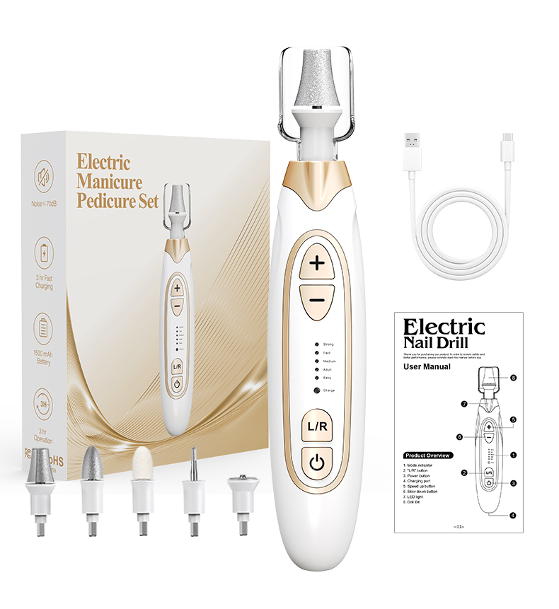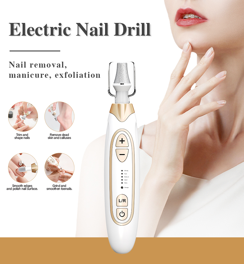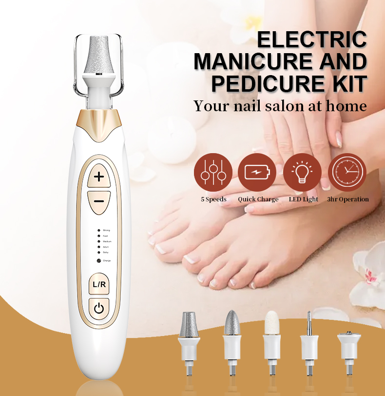 (Strong Motor USB Rechargeable Electric Nail Grinder With 5pcs Grinding Heads for Callus and Dead Skin Remover