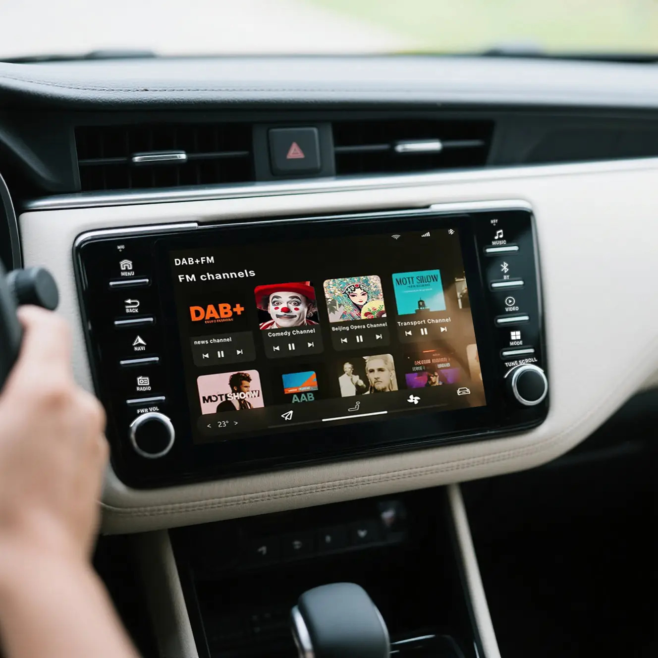 DAB+ digital radio knob control to switch between stations and adjust the volume