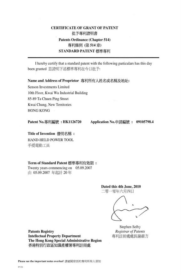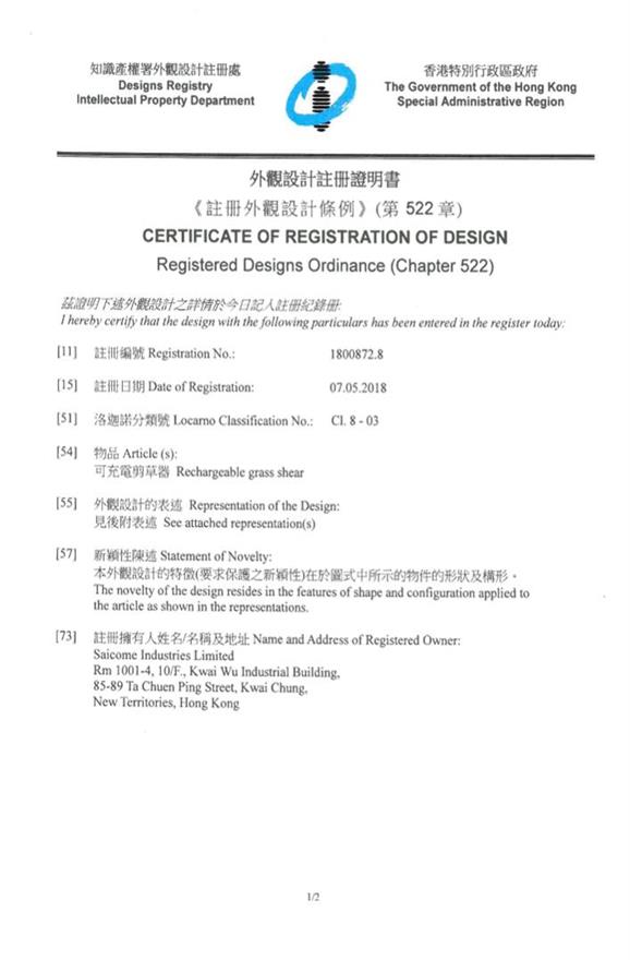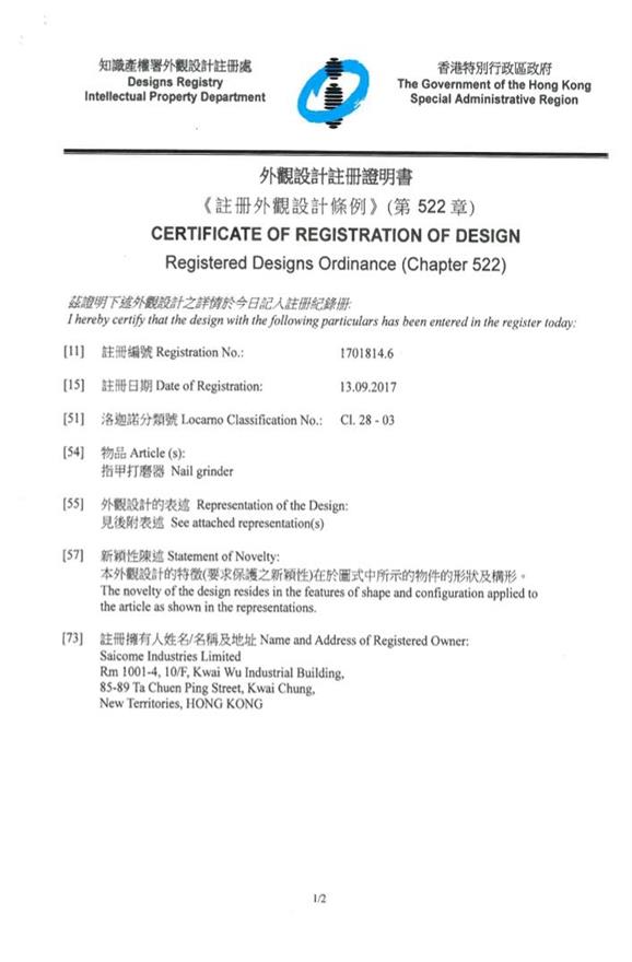 外觀設計註冊證明書