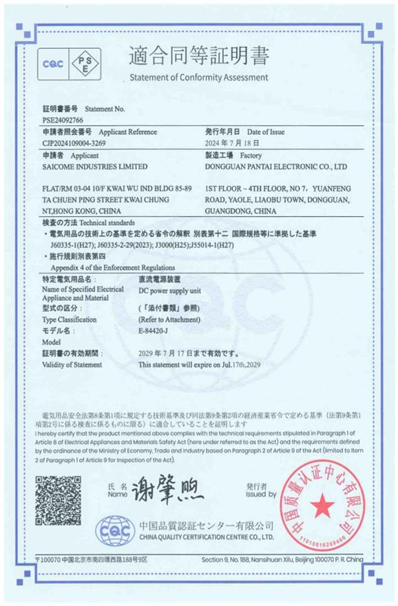 PSE適合同等証明書