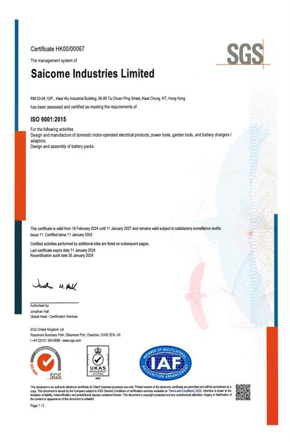 GS Battery Charger Certificate : HK12071283