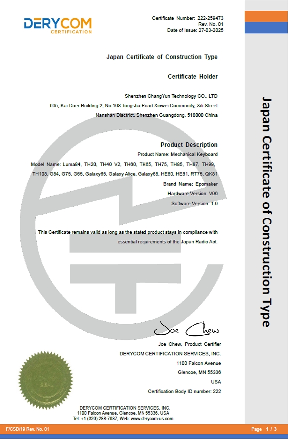 發行機構DERYCOM CERTIFICAITON SERVICES, INC.有效日期(不適用)