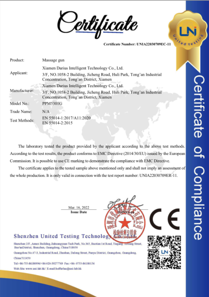 CE EMC certification for massage gun