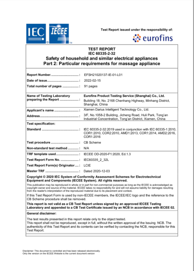 CB Test Report for foot & calf massager