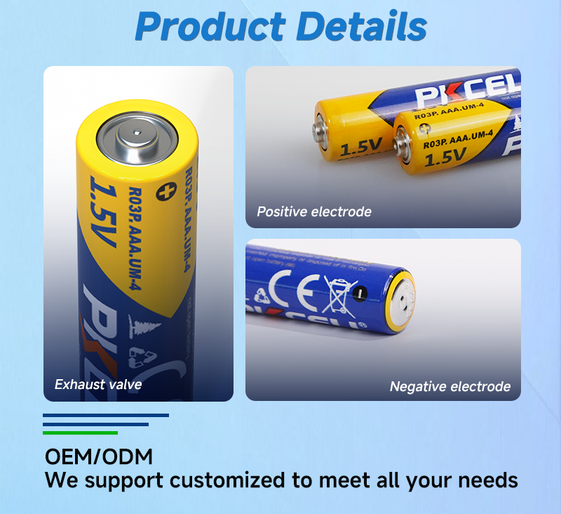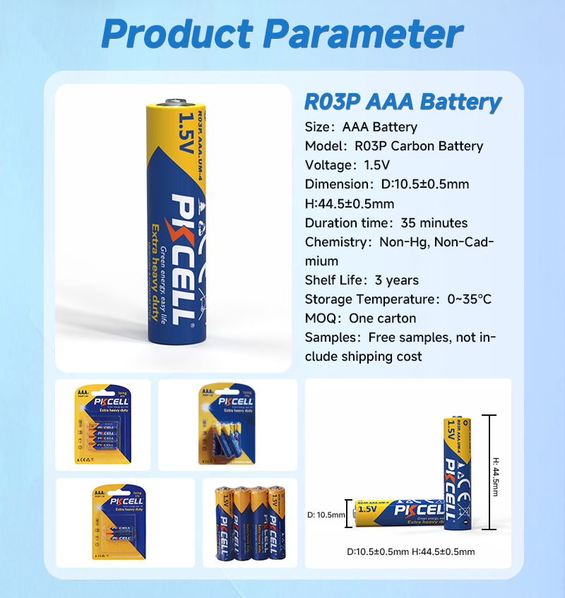 New Design PKCELL Logo R03P UM-4 Carbon Zinc 1.5V AAA Dry Battery
