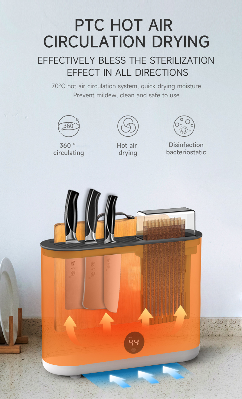 Household Automatically Stainless Steel Chef Kitchen Sterilize Disinfection Knife Set With Knife Holder