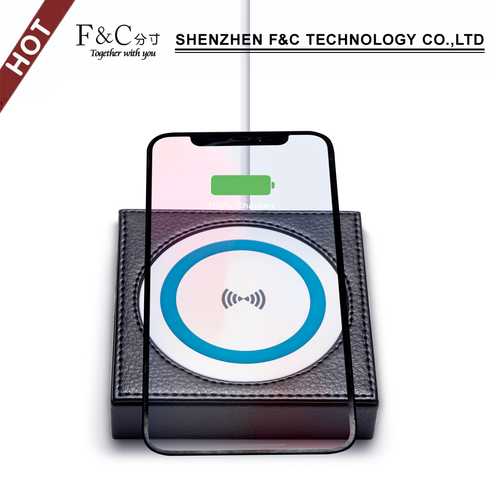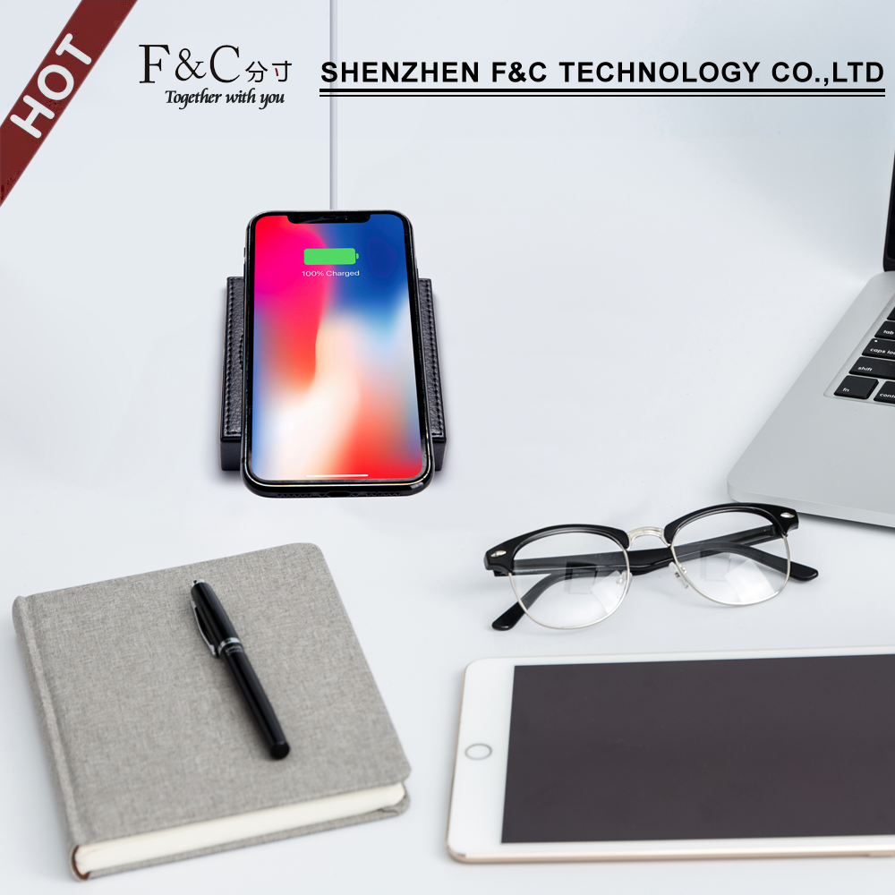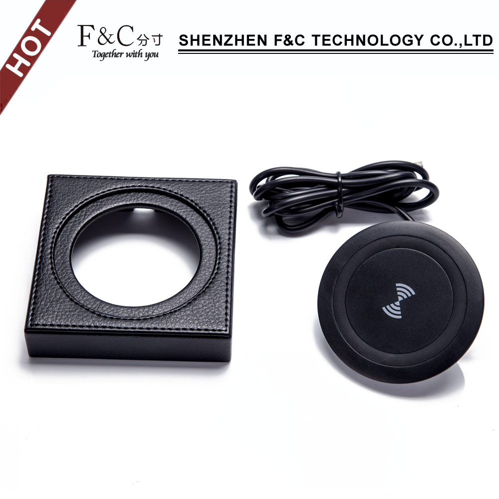 QI fast wireless charger pad with anti slip bar, embedded in the desktop, table