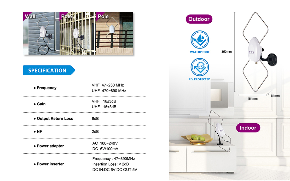 HDA-5000 dual-quad digital amplified outdoor TV antenna allows you to receive free-to-air 4K UltraHD and crystal full HD 1080p TV channels. Working range up to 50 miles.