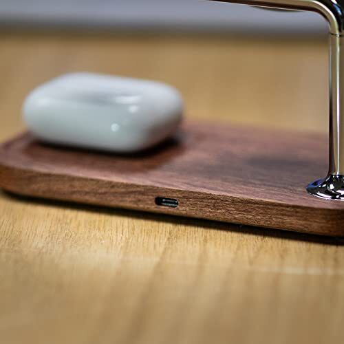 PREMIUM MATERIALS. A sleek and minimalist charge arm compliments a natural real wood base.