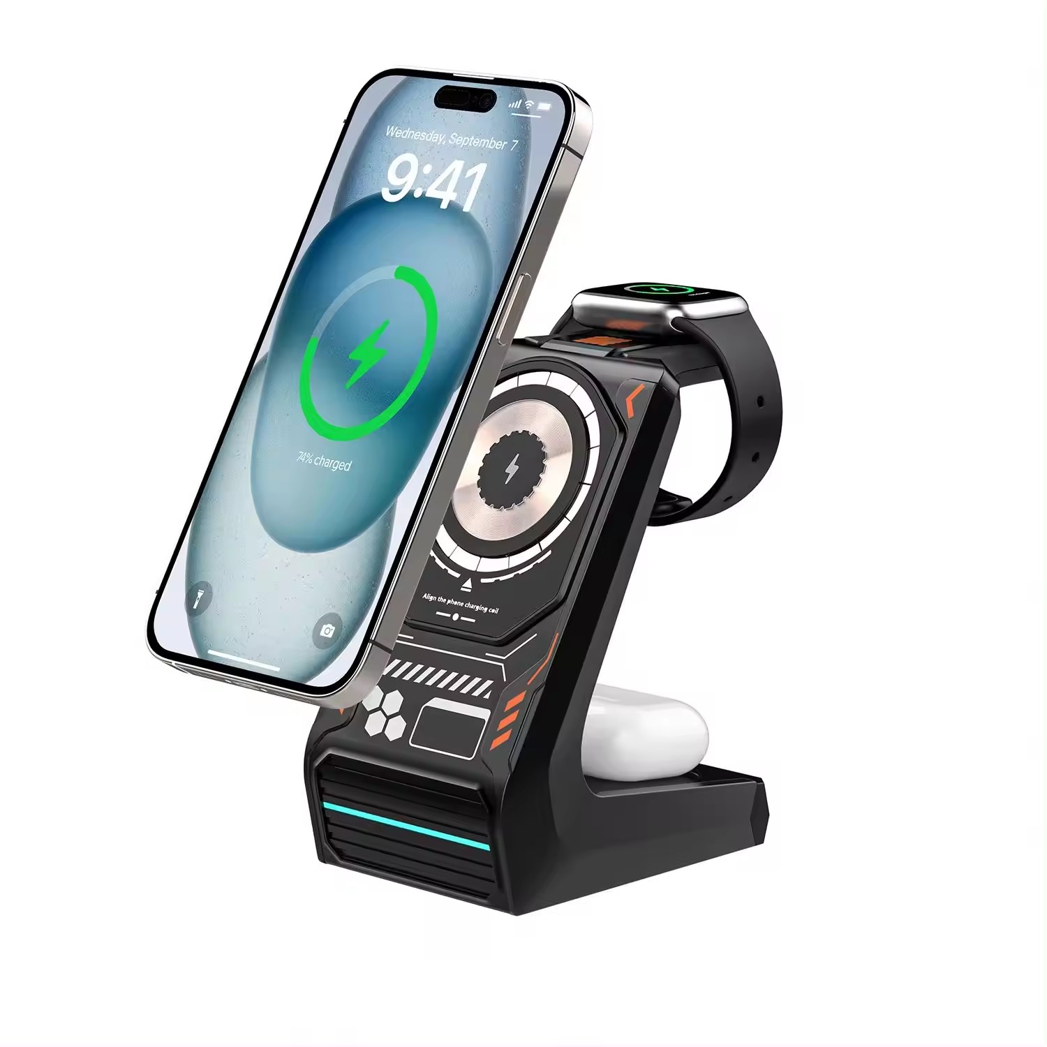 2024 Newest 15W 3 in 1 Magnetic Wireless Charger Stand Fast Charging Dock Station | 消費電子產品 | 手機,平板電腦和數碼配件
