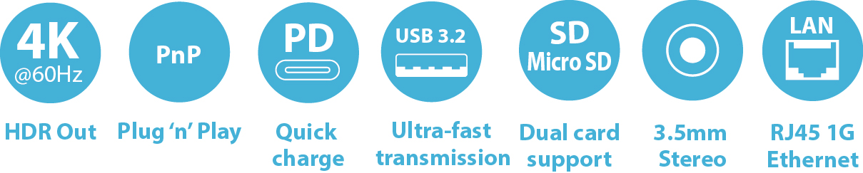 HDMI 2.0 / 4K60 / USB 3.2 Gen2(10Gbps) / PD 3.0 100W