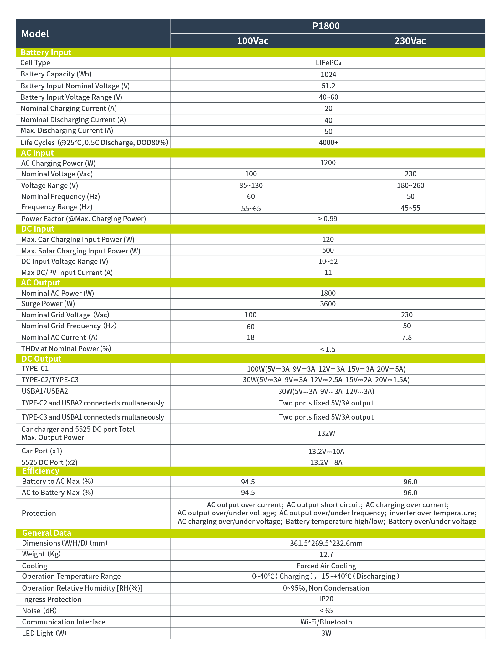 The IEETek P1800 portable power station provides a nominal AC output of 1800W and can handle surges up to 3600W. Equipped with SmartDrive technology, it automatically adjusts when connected appliances exceed 1800W, ensuring safe, efficient, and reliable power delivery without compromising performance.