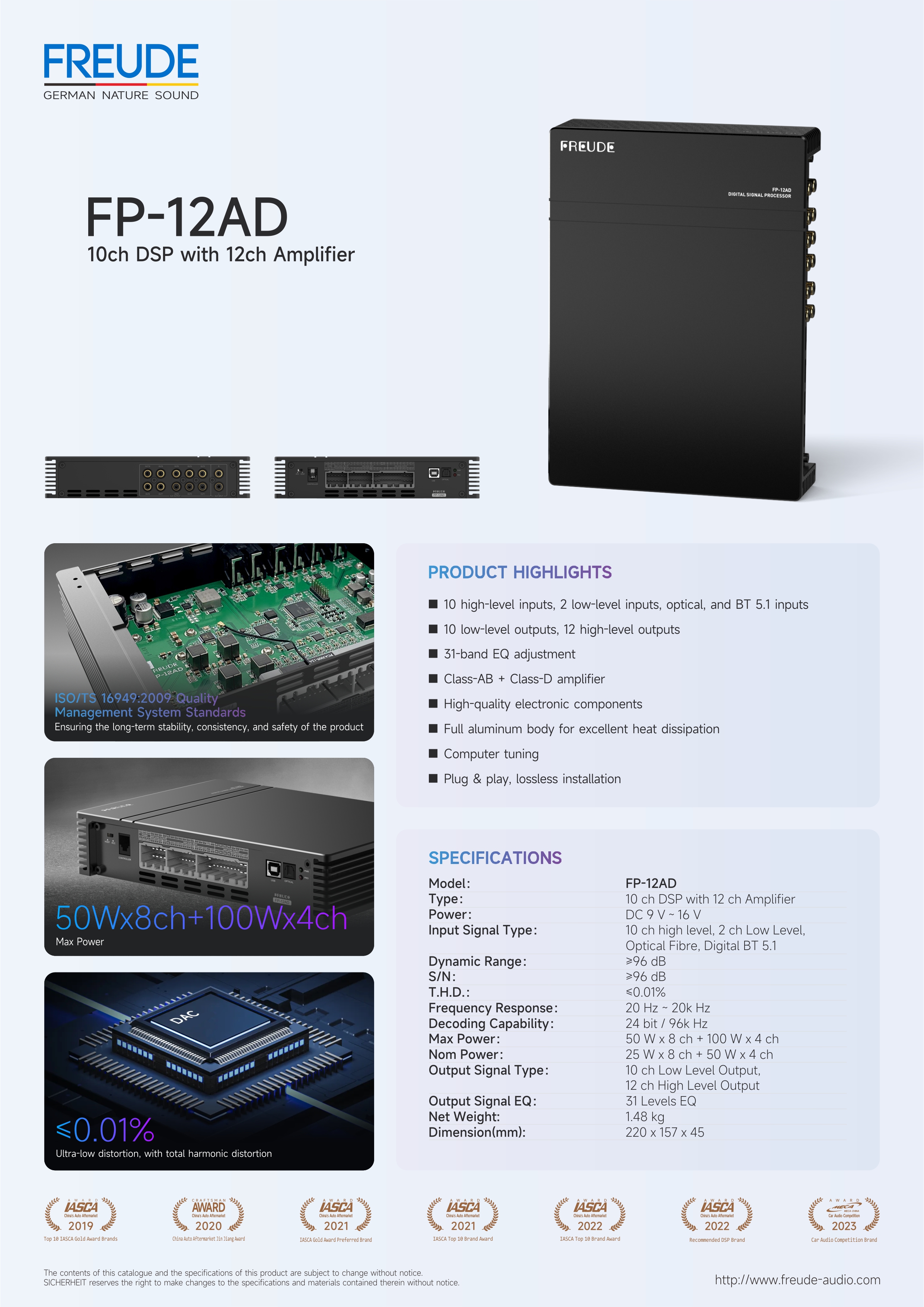 DSP Amplifier 10 ch DSP with 12 ch Amplifier FP-12AD | 汽車電子 | 汽車影音系統