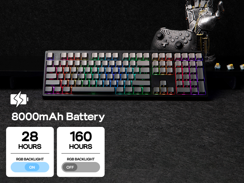 Liberate your setup with the ultimate freedom of a stable wireless keyboard boasting the outstanding 8000mAh battery.