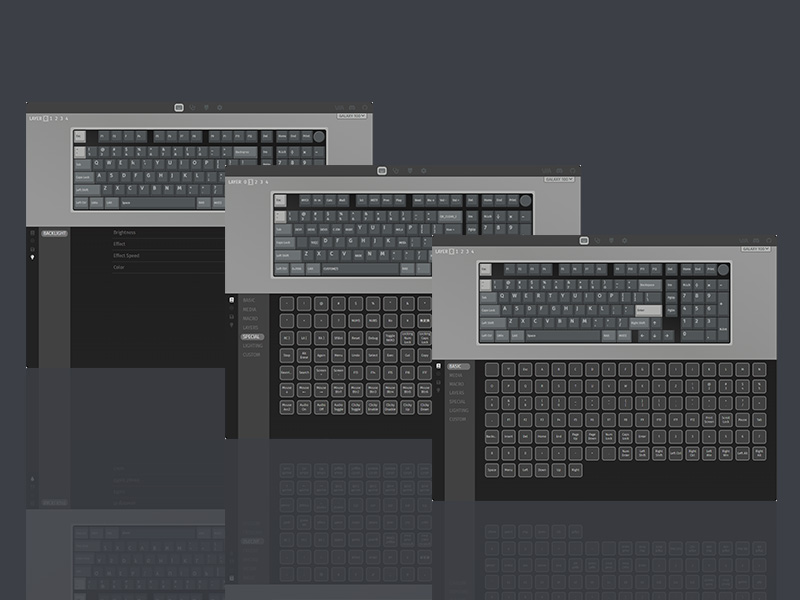 To elevate your typing experience, the Galaxy100 keyboard is upgraded with QMK/VIA support. The VIA Software offers endless possibilities in remapping keys, editing automate repetitive macros and customizing layers, making Galaxy100 perfect for those seeking maximum control and personalization.Note: QMK supports working in wired mode.