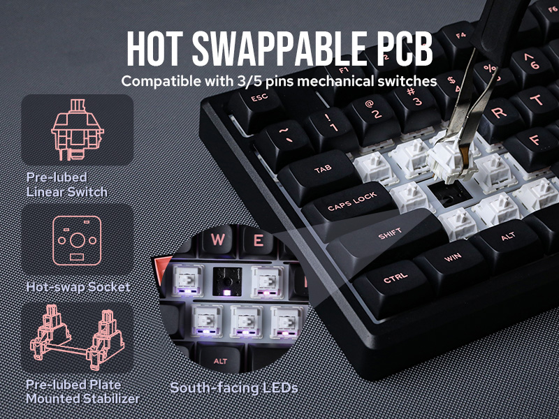 Lubed in factory, the Galaxy100 keyboard houses linear marble switches that sounds as gentle and enjoyable as mellow marbles. With the cushioned Gasket-Structure, the typing sound is dampened to a soft thud perfect for various using scenarios.