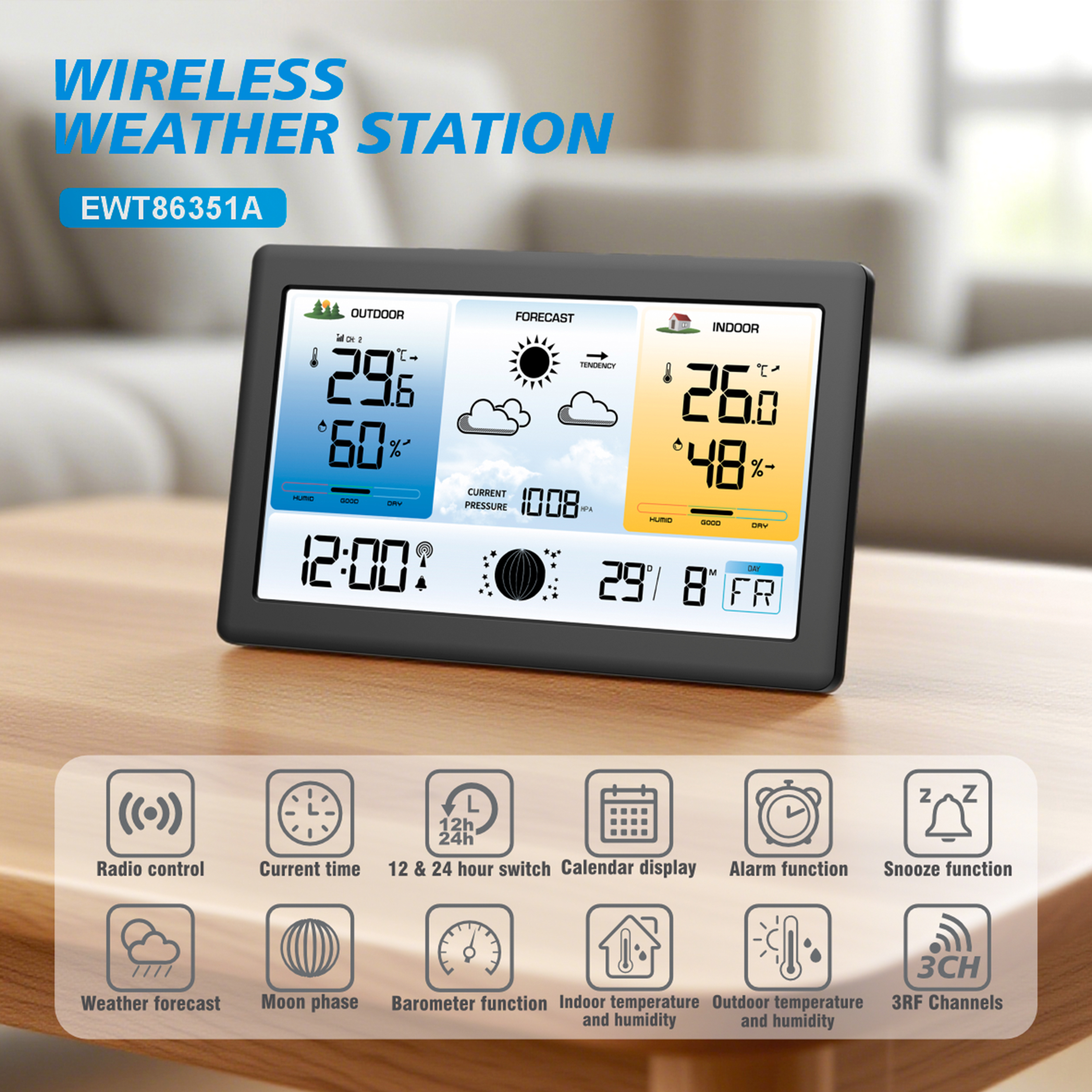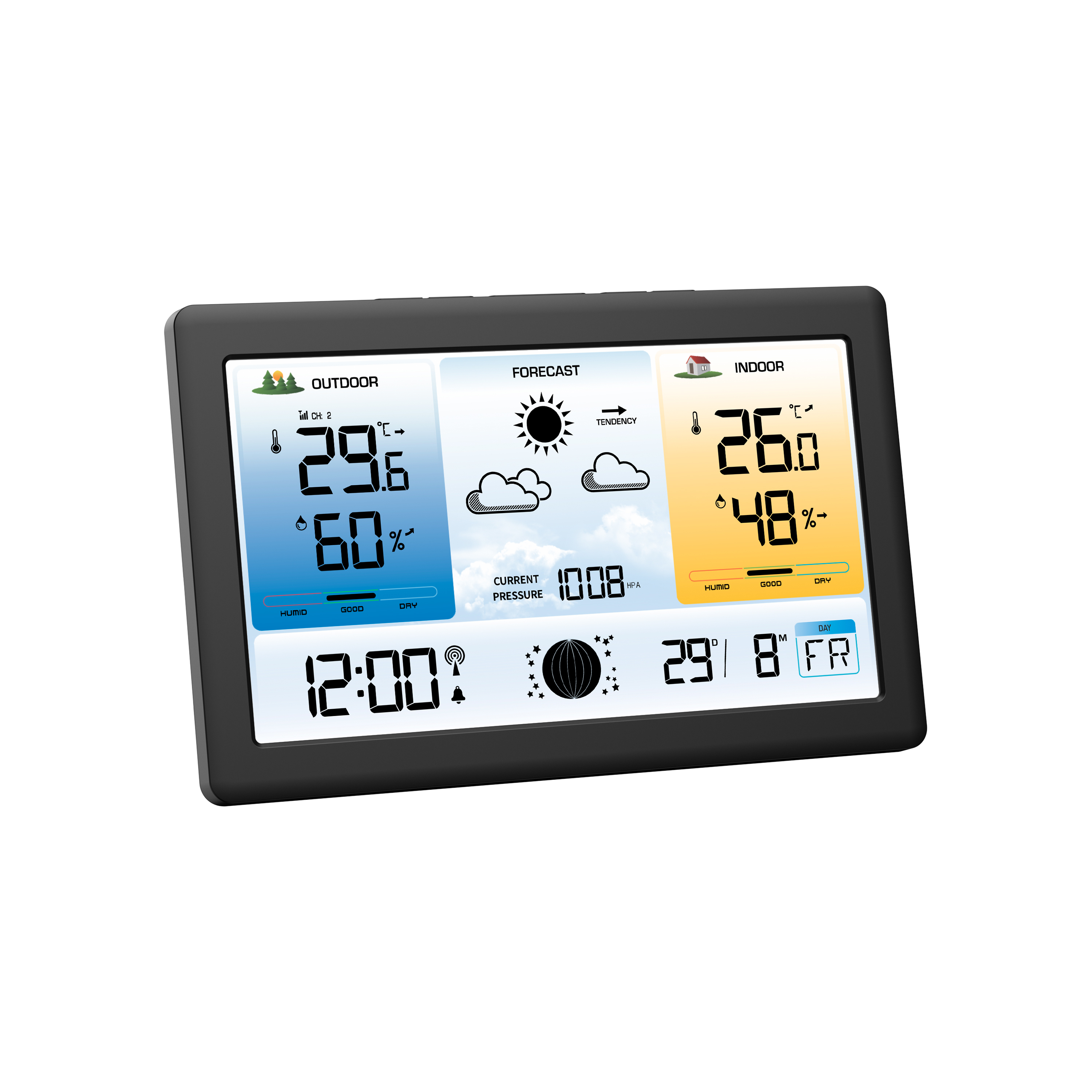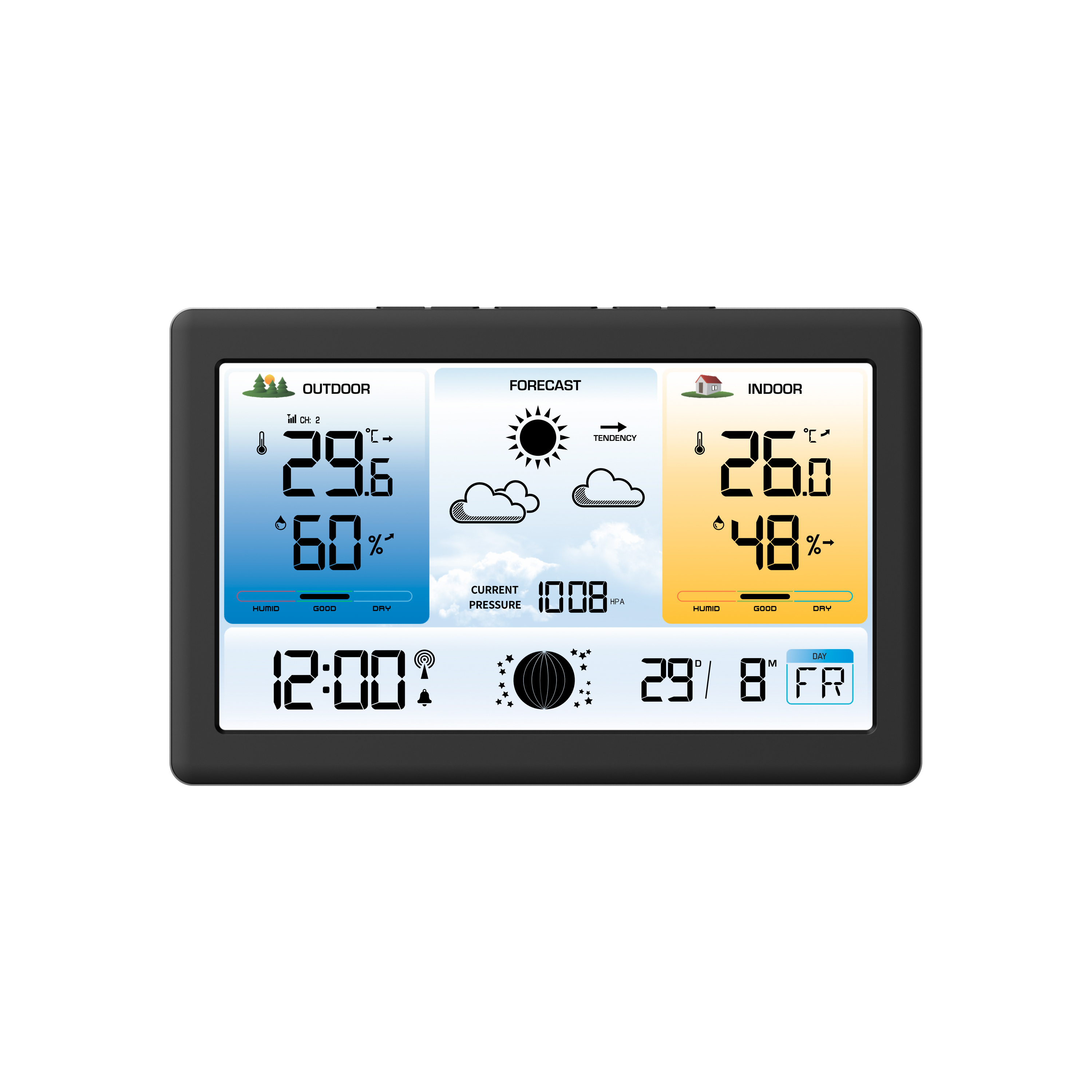 Main Function | weather forecast/time/calendar/ alarm clock/indoor and outdoor temperature and humidity | Packing Information | 1xmonitor + 1xsensor + 1xadaptor + 1xA4 size manual |