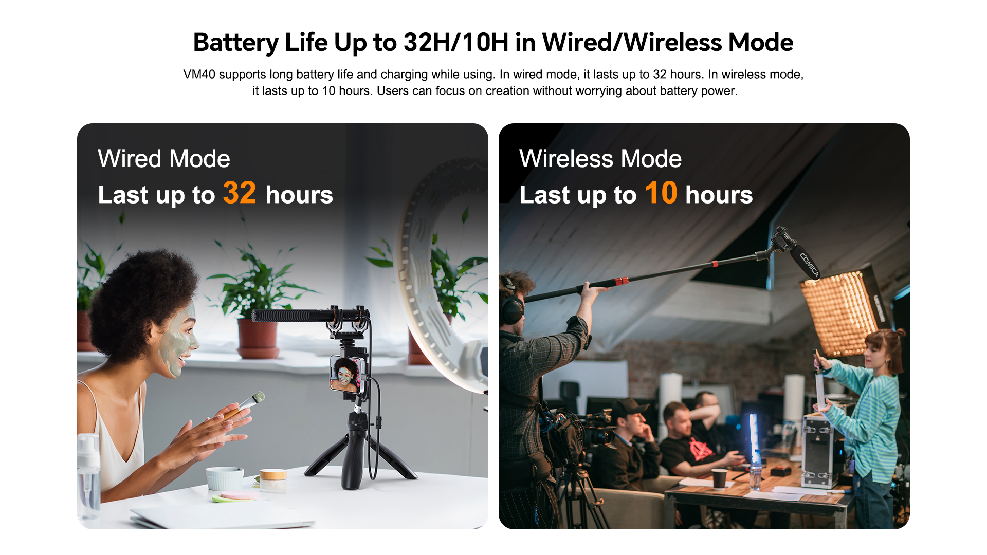 COMICA VM40 Shotgun Microphone with Wireless Modes, 48kHz/32-bit, 32GB Storage, Safety Audio Track, Super Cardioid Camera Mic for Filmmakers, Vloggers - Wireless Mic for Camera, Smartphone, PC | 消費電子產品 | 家庭影音娛樂系統