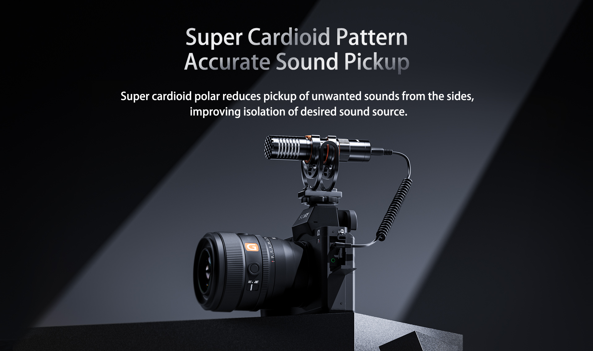 • 【Super Cardioid Directional Pattern】The VM10 PRO camera microphone adopted a super cardioid directional pattern, which can eliminate the background noise effectively and record the target sound clearly.