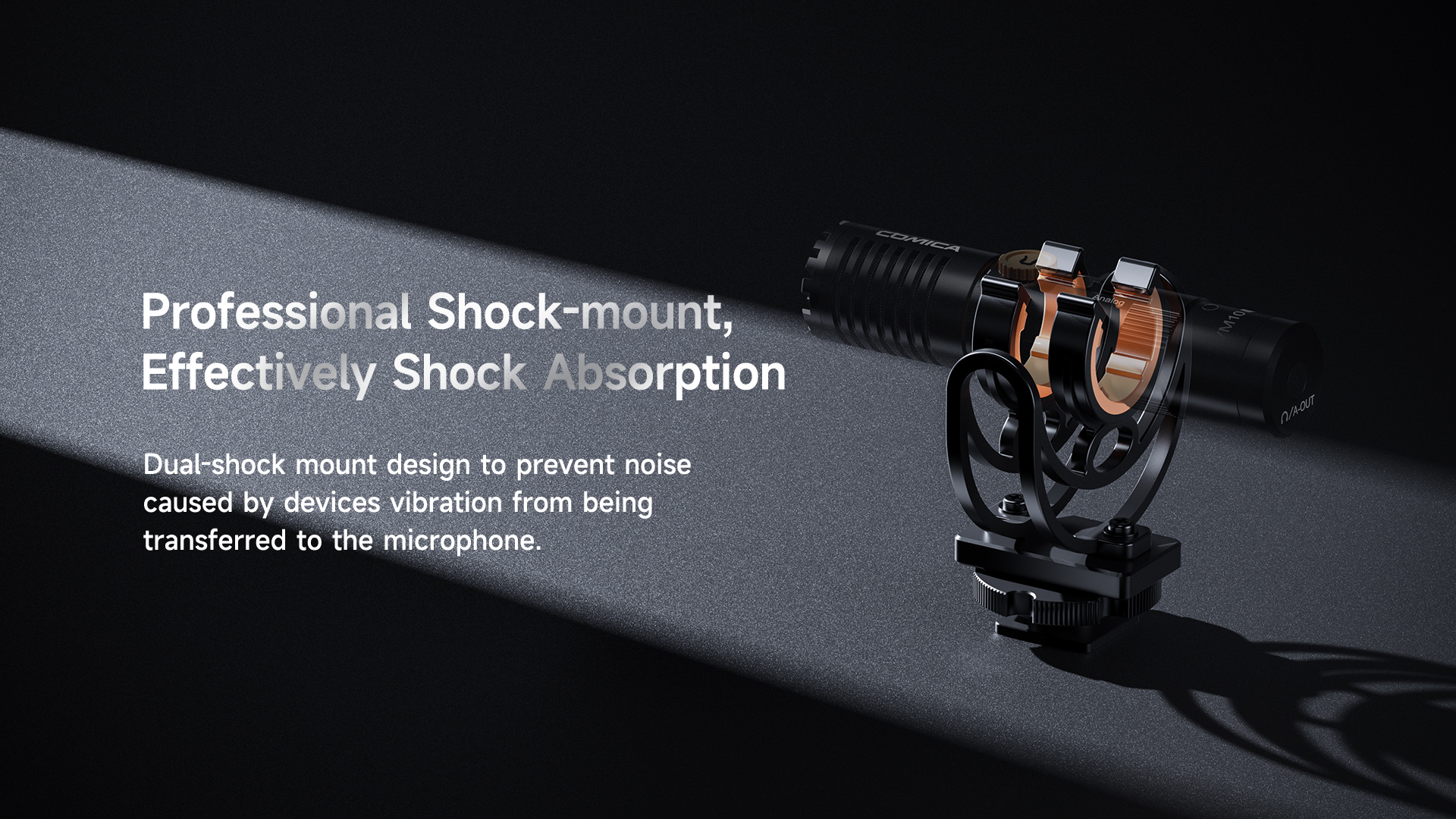 • 【Super Anti-interference】Built in 100% aluminum material and especially shock mount. The camera microphone can strengthen the anti-interference function to reduce the noise from vibrations.