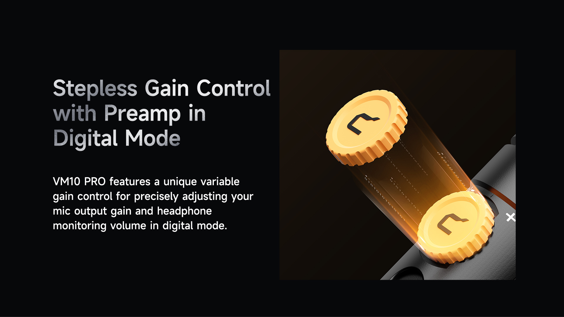 • 【Stepless Gain Control Available in Digital Mode】 You can freely adjust the volume to meet your recording needs. In addition, you can monitor the working status of the microphone while recording in real-time