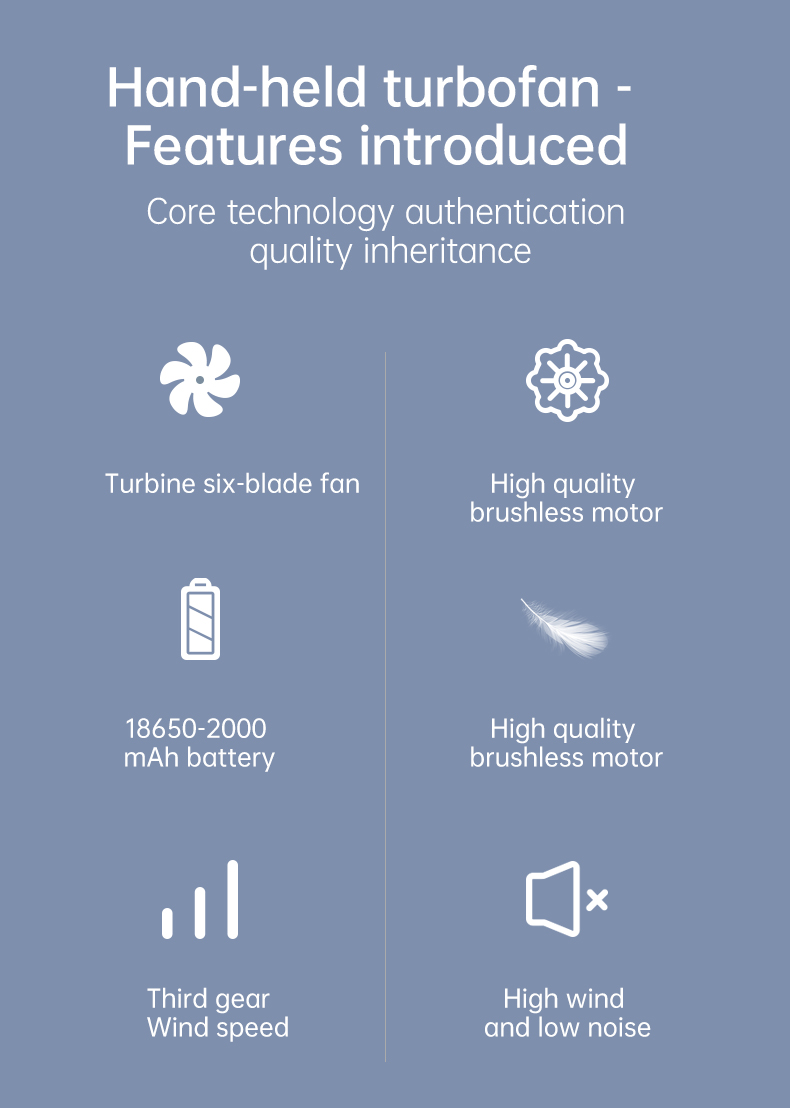 Lightweight High-speed Wind Low-noise Handheld Fan