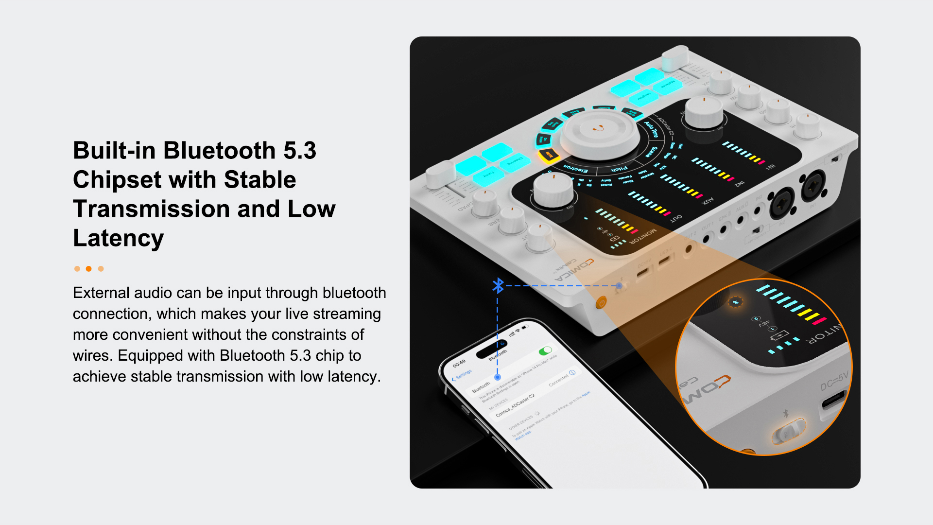 5. Built-in Bluetooth 5.3 Chipset with Stable Transmission and Low Latency