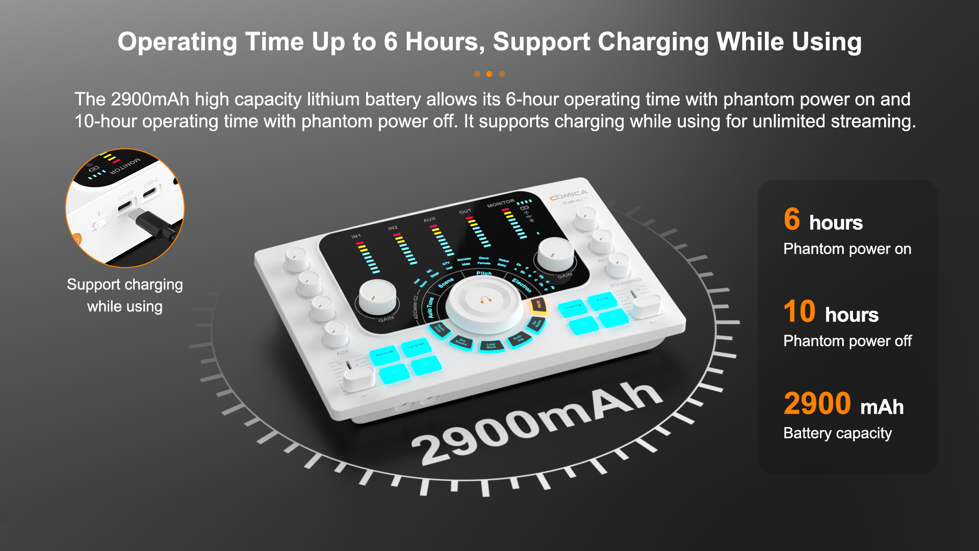 12. Operating Time Up to 6 Hours, Support Charging While Using