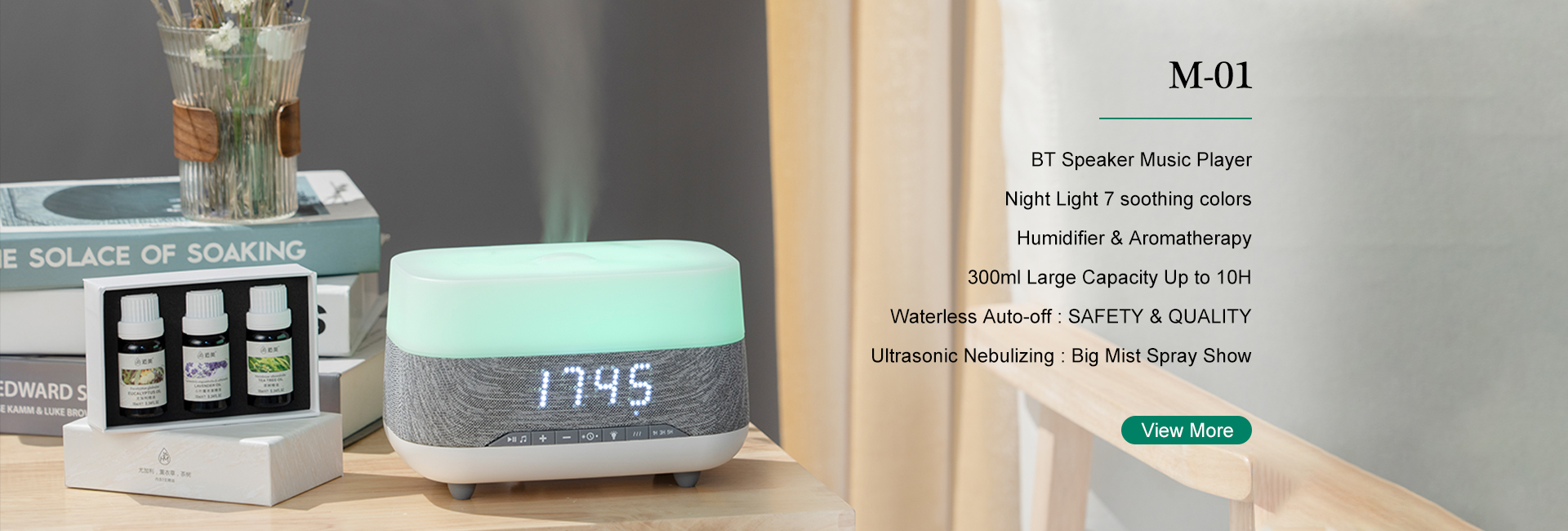 Essential Oil Humidifier Aromatherapy Diffuser Air Humidifier with Bluetooth Speaker and Clock