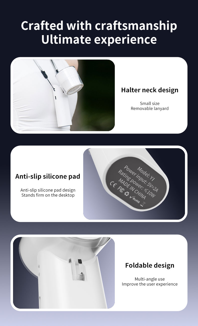 3-in-1 Foldable Design: Can be used as a handheld fan, neck-hanging fan, or desktop fan, making it versatile for different scenarios.