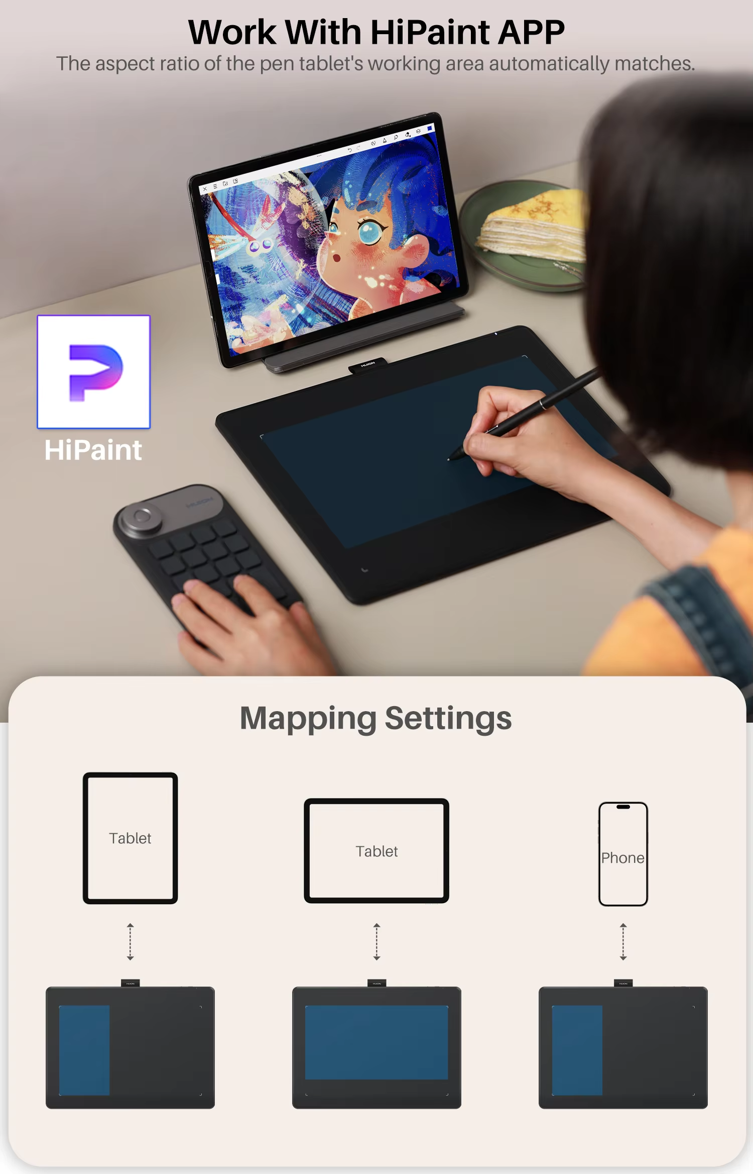 You can connect the Inspiroy Frego not only to an Android phone or tablet but also to an iPhone or iPad through HiPaint or ibisPaint. Furthermore, the side keys on the pen can be set as various shortcuts.