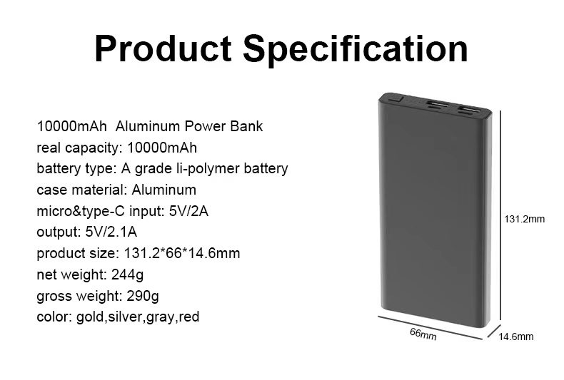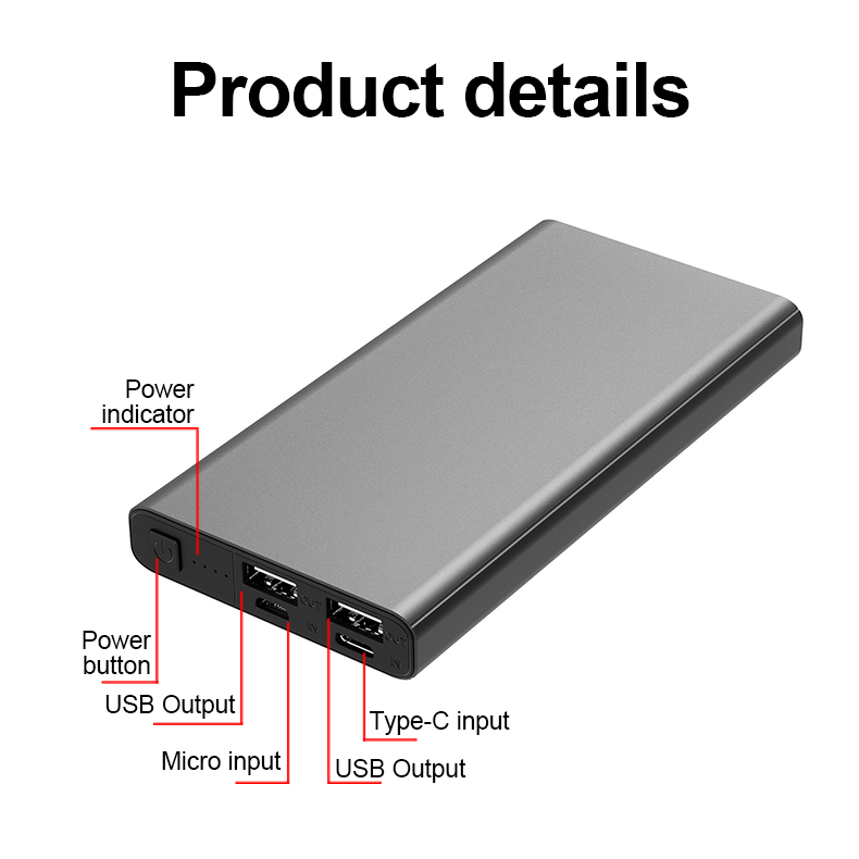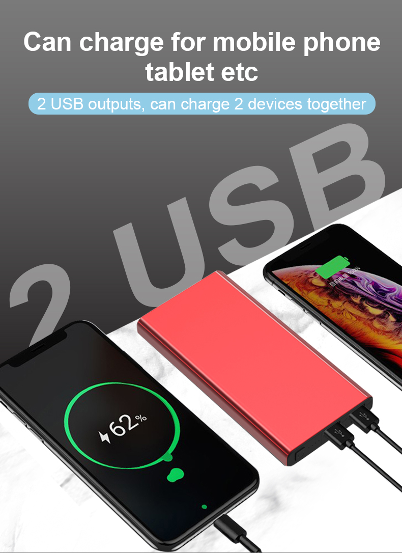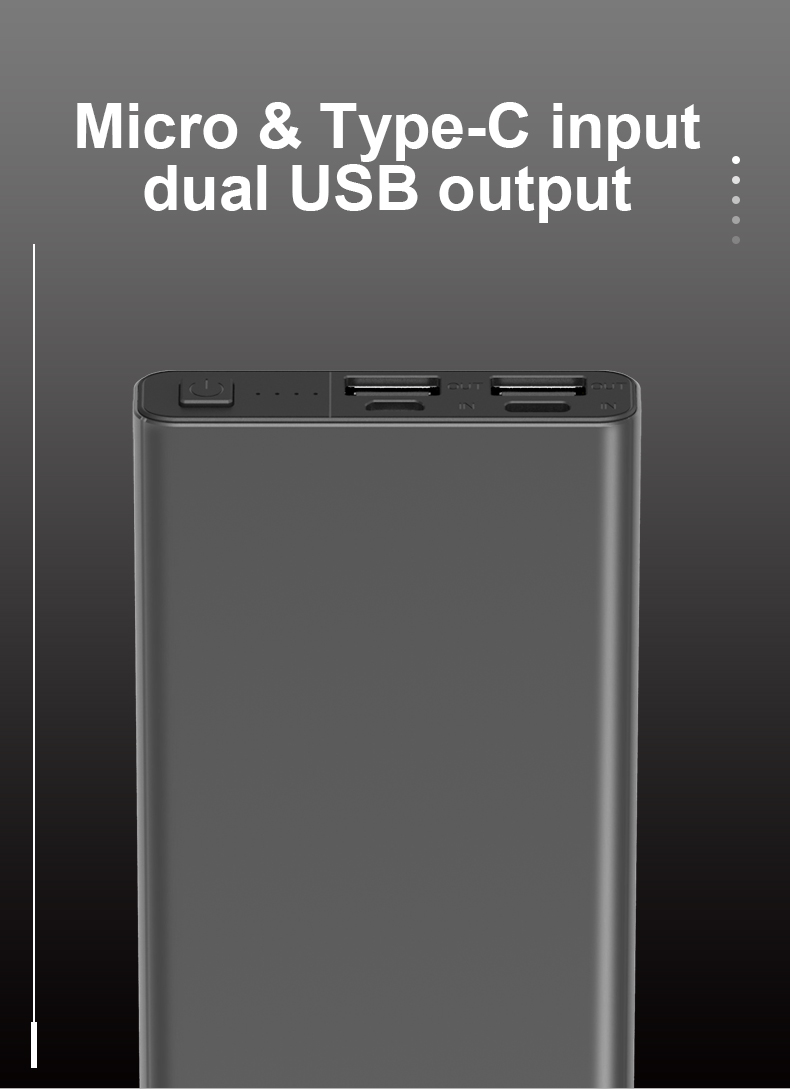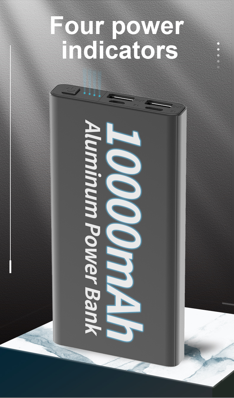 Ultra-thin Mini Portable Power Bank 10000mAh Dual USB Charge Aluminum Alloy Powerbank