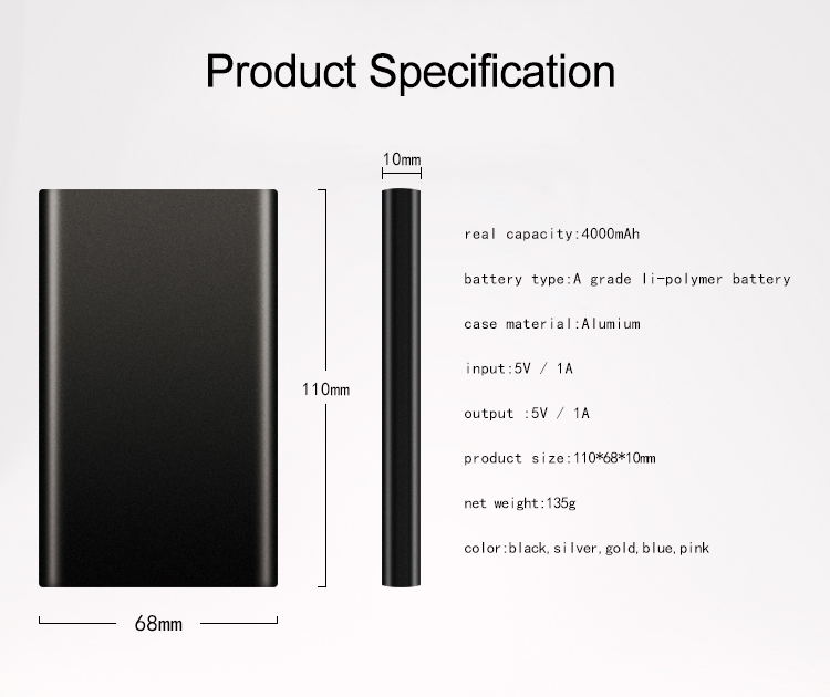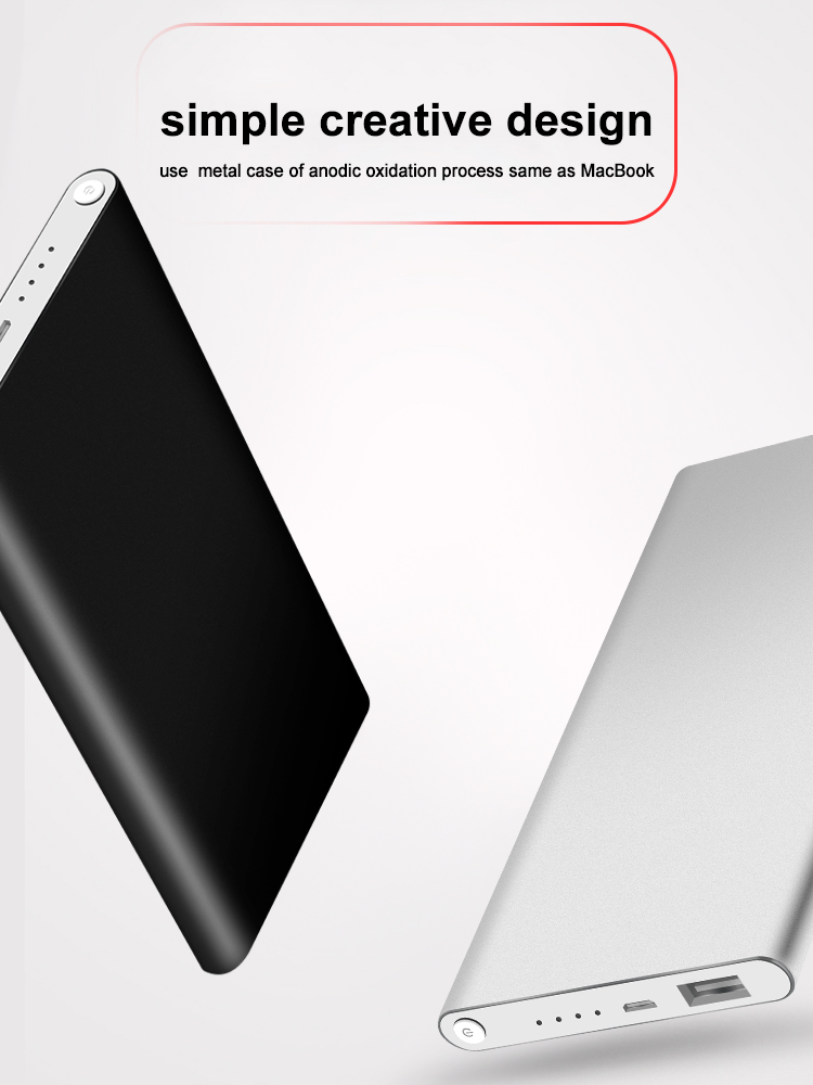 Slim Clip Emergency Mini Print Logo Silver Power Banks Aluminum Material Case 4000mah Powerbank Power Bank