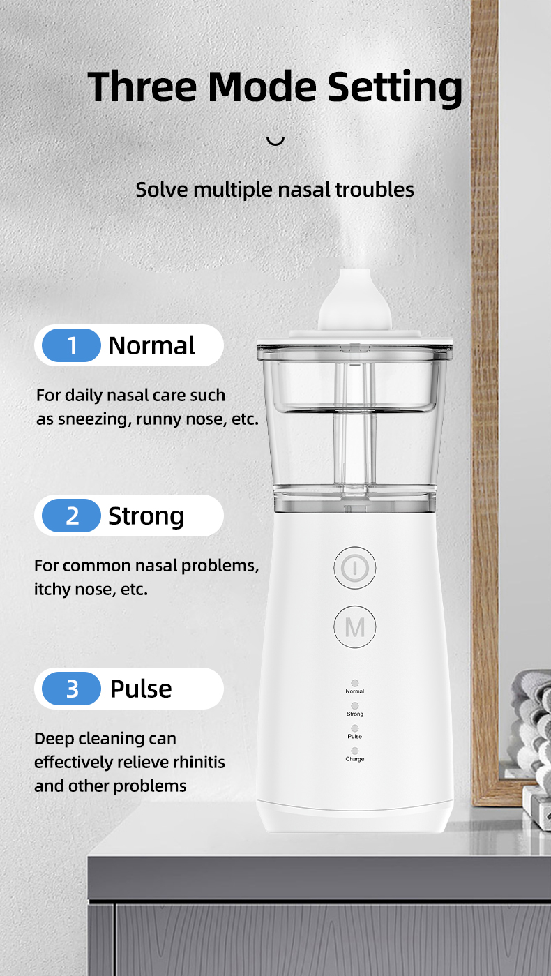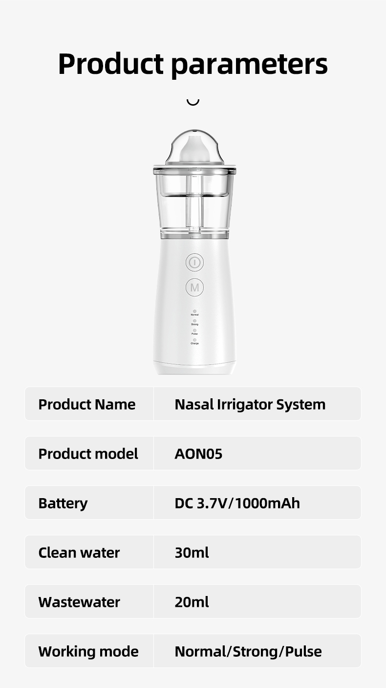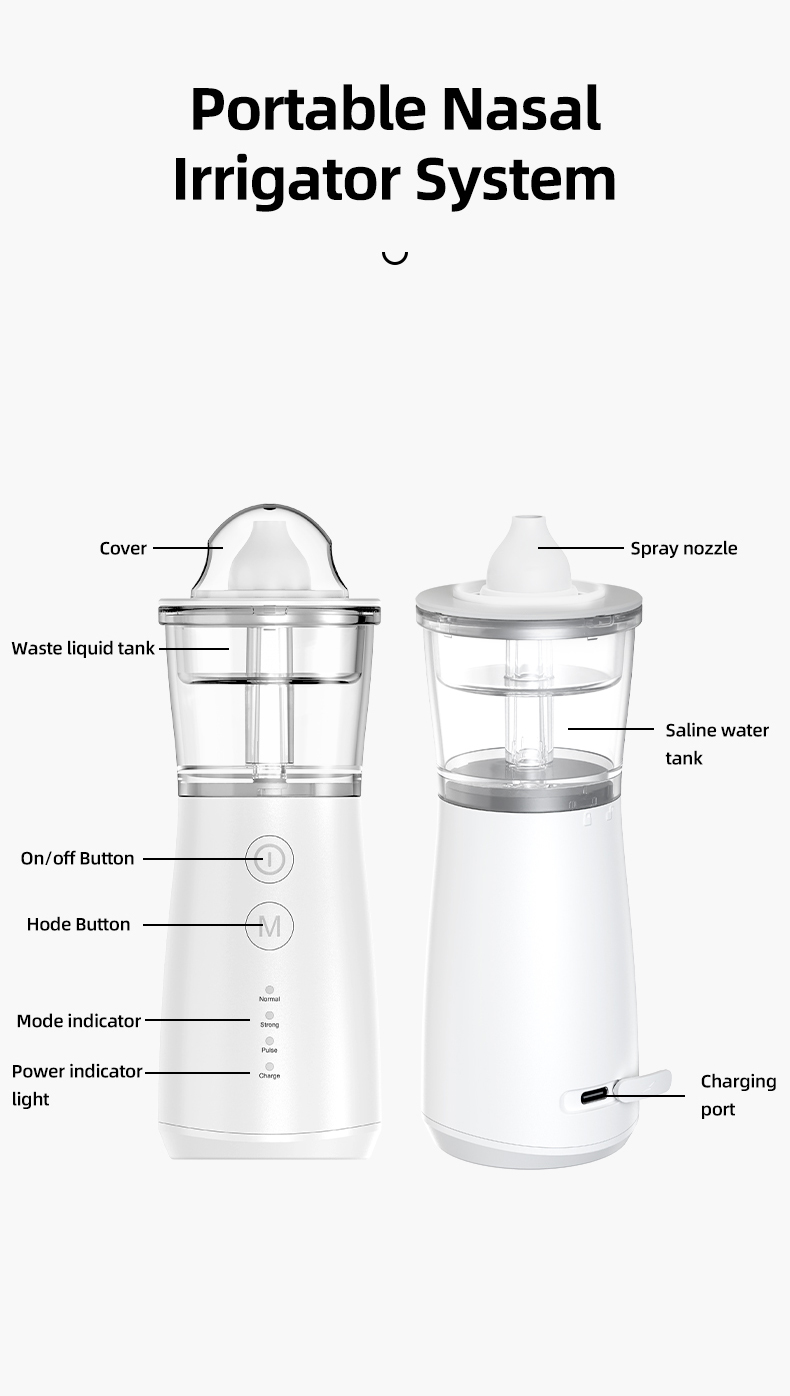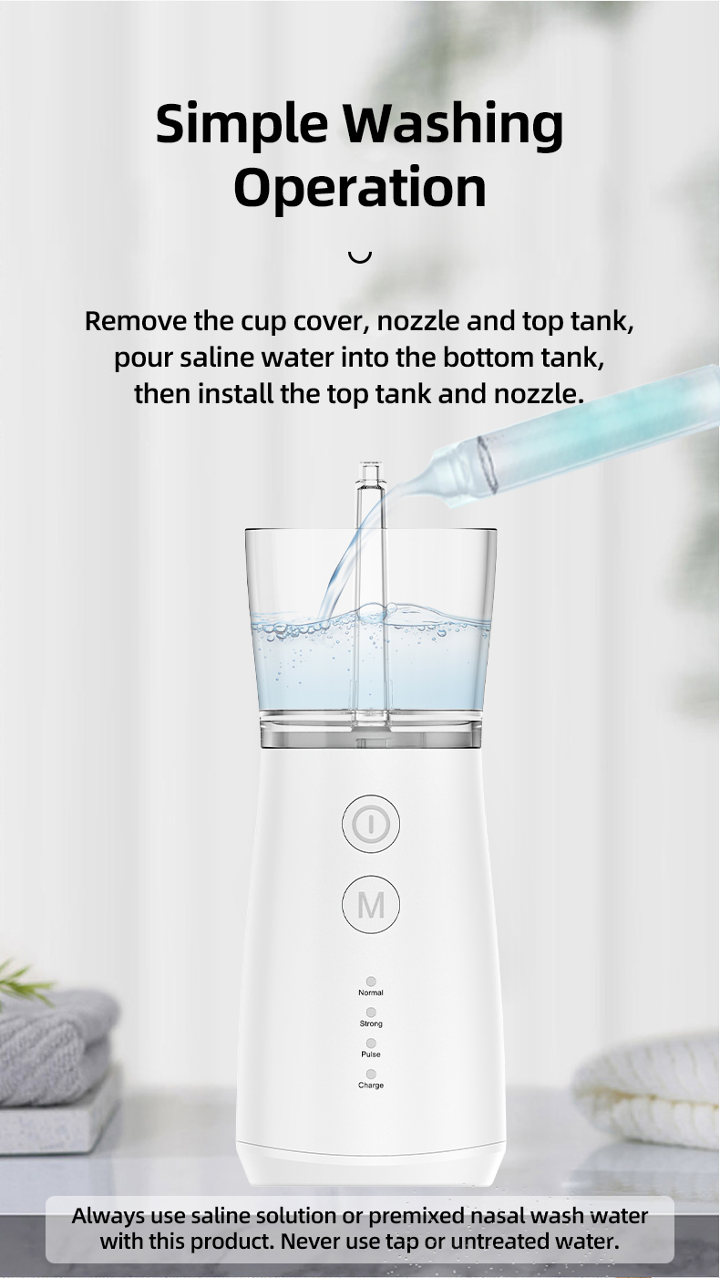 IPX7 Waterproof Portable Rechargeable Electric Nasal Wash Irrigator 3 Working Modes USB Power for Smooth Breathing Household Use