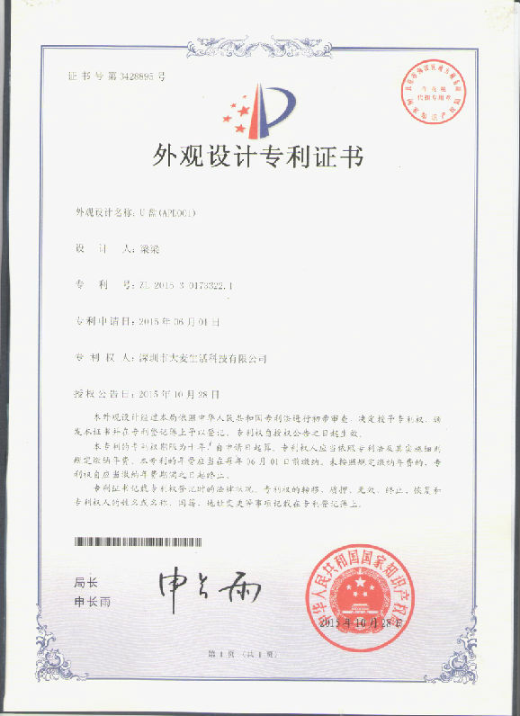 Patent certificate of the appearance for the iphone usb APD001