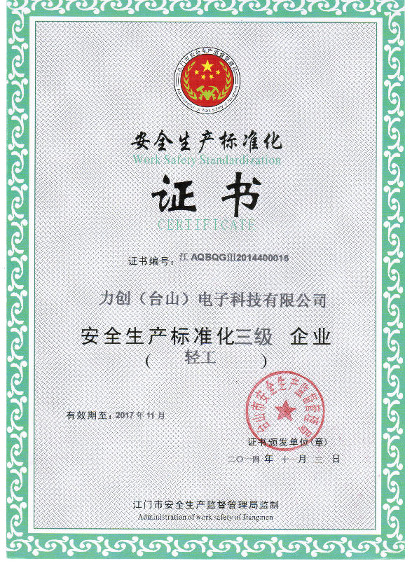 安全生产标准化证书