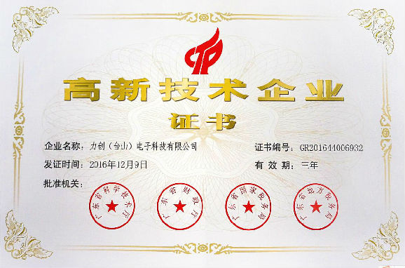 高新技术企业证书