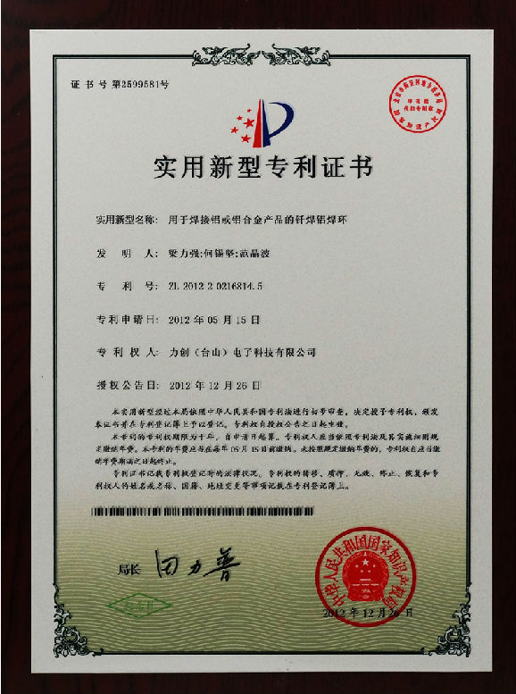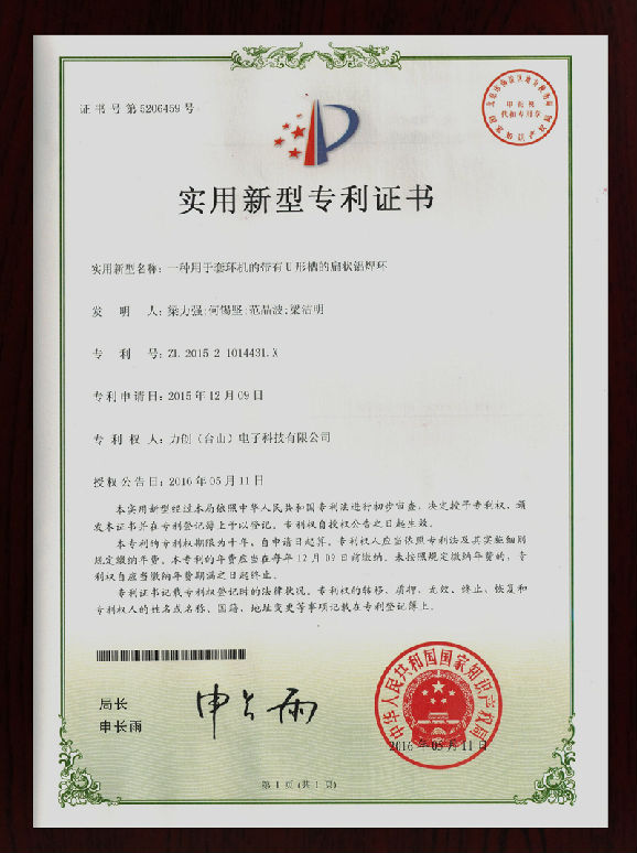 实用新型专利证书