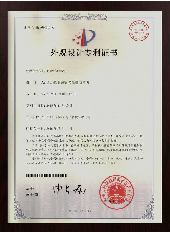 外观设计专利证书