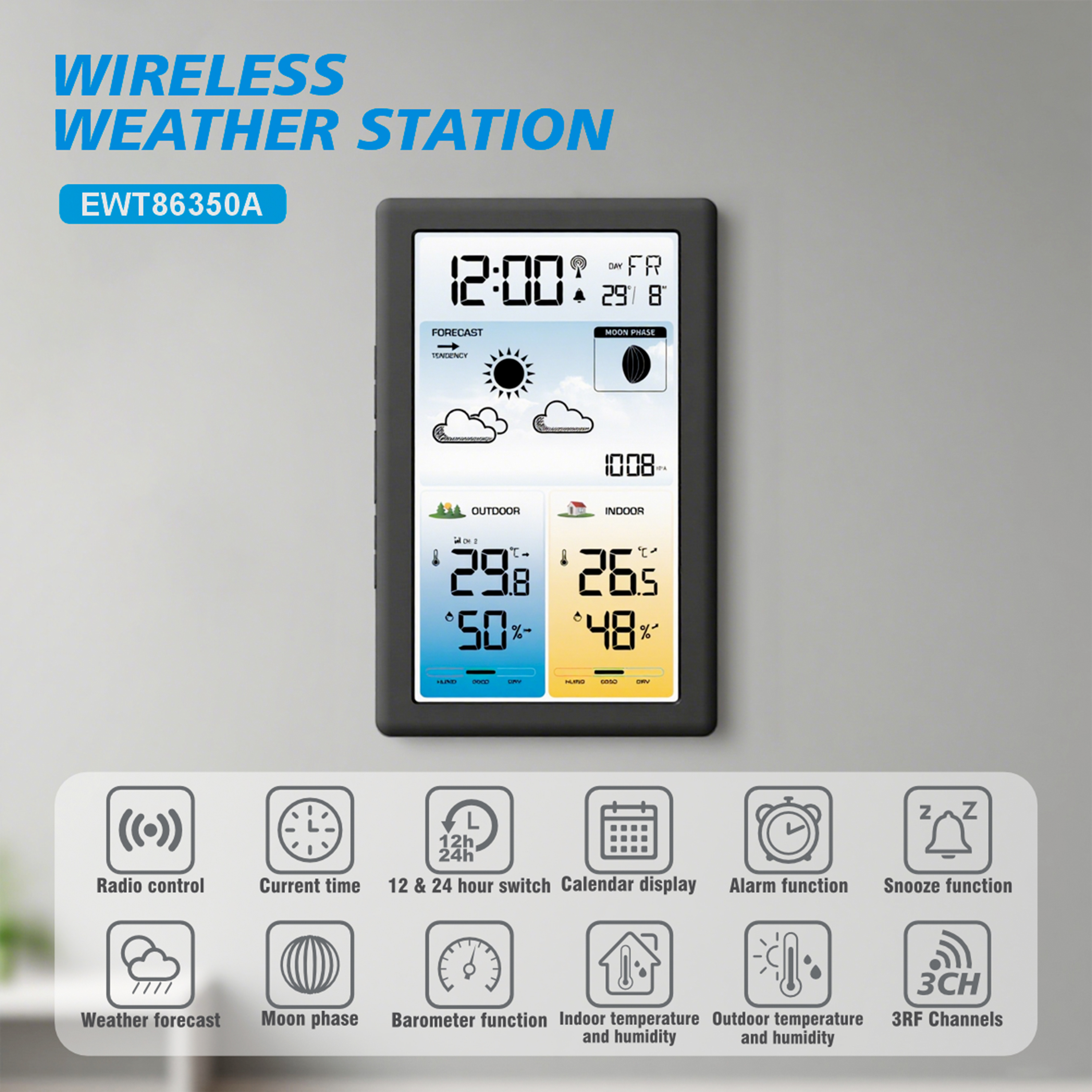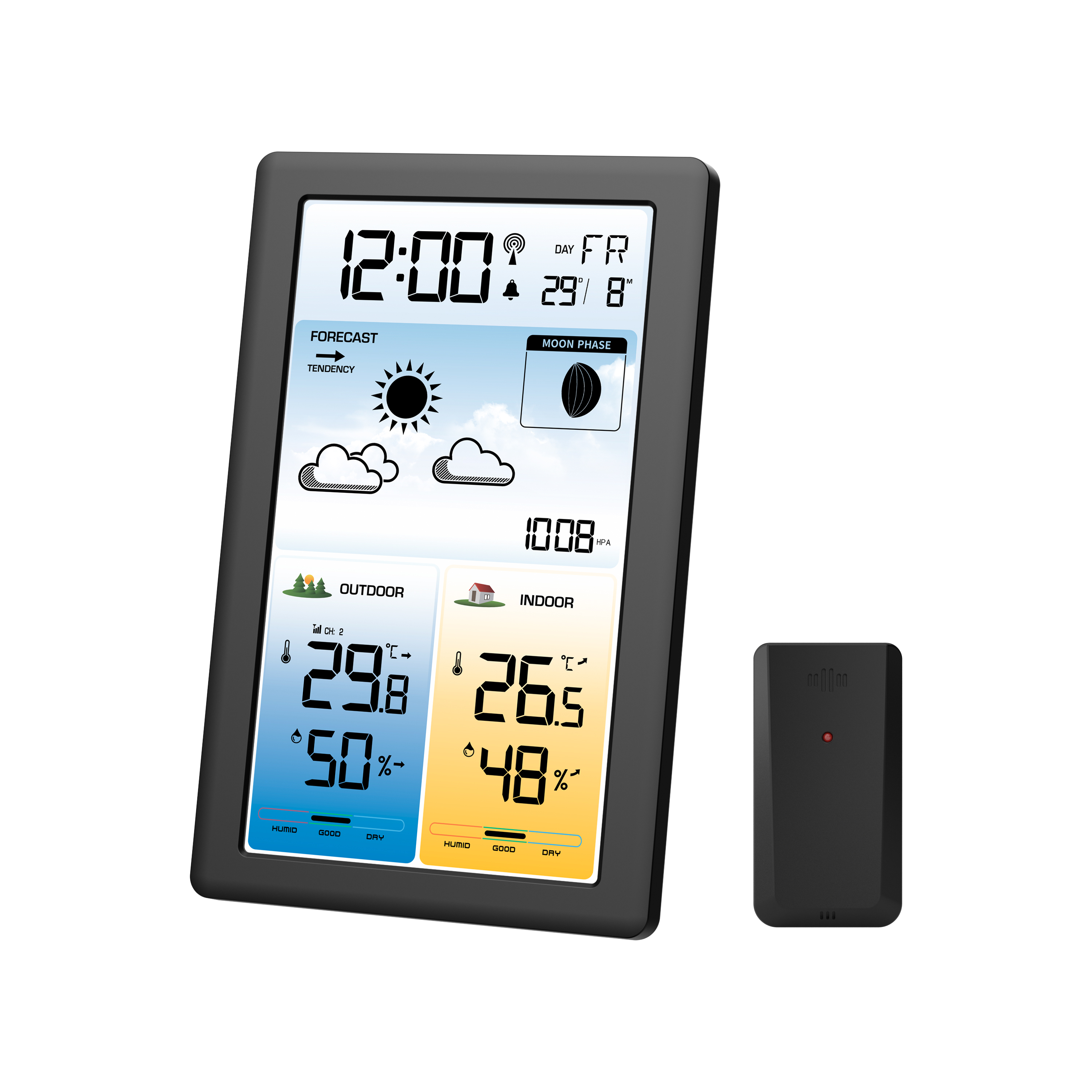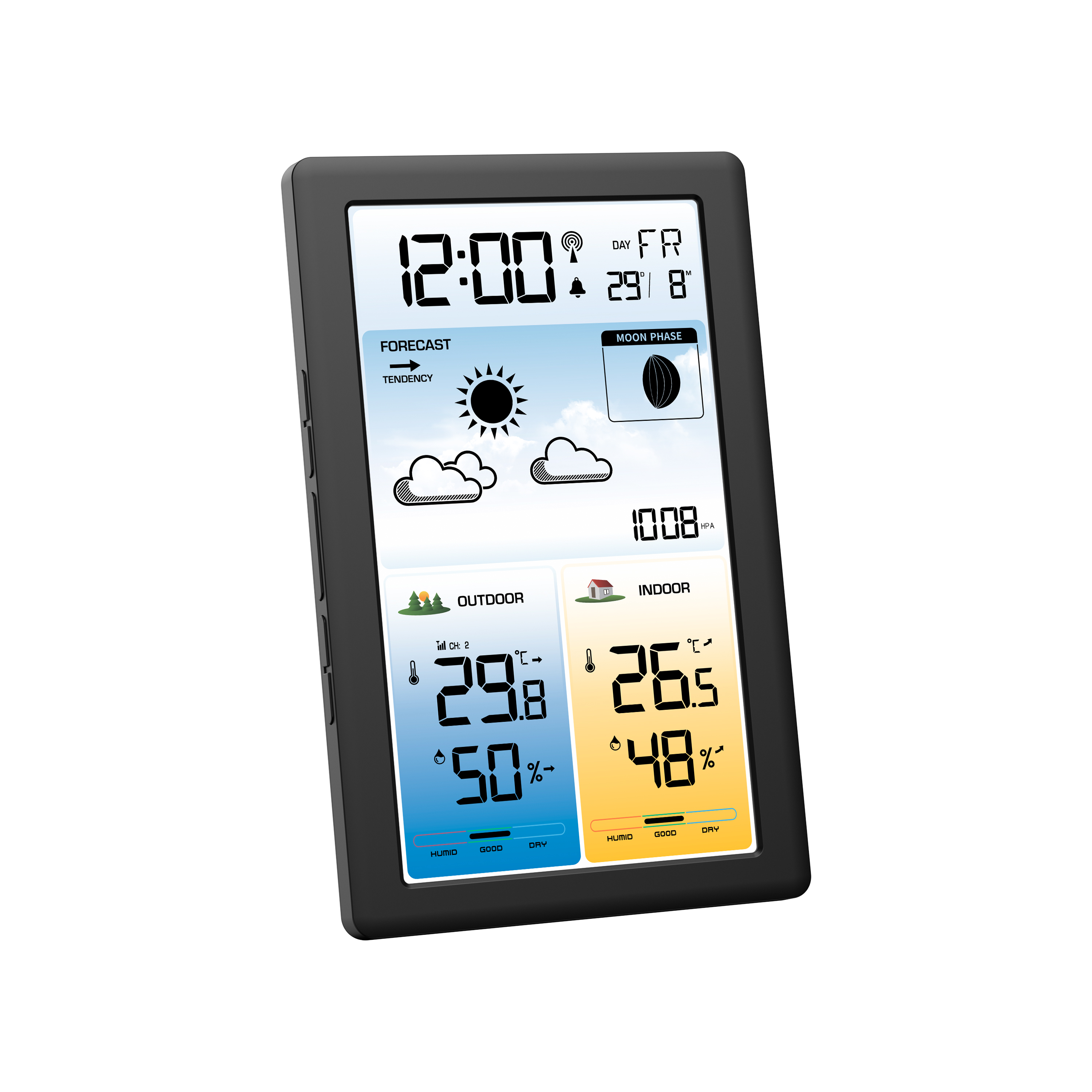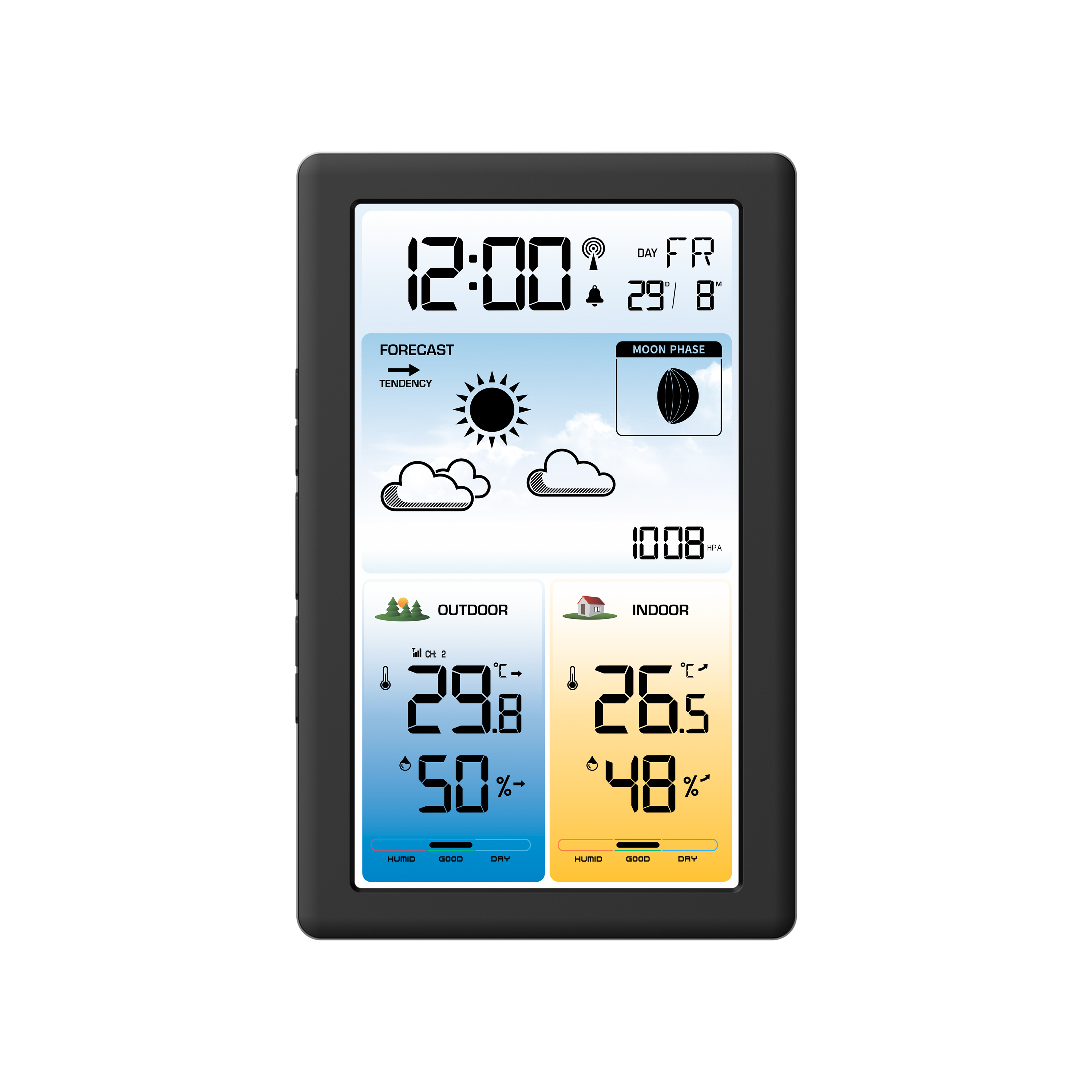 2025 New design digital color display alarm radio clock for home with hygrometer and thermometer weather station