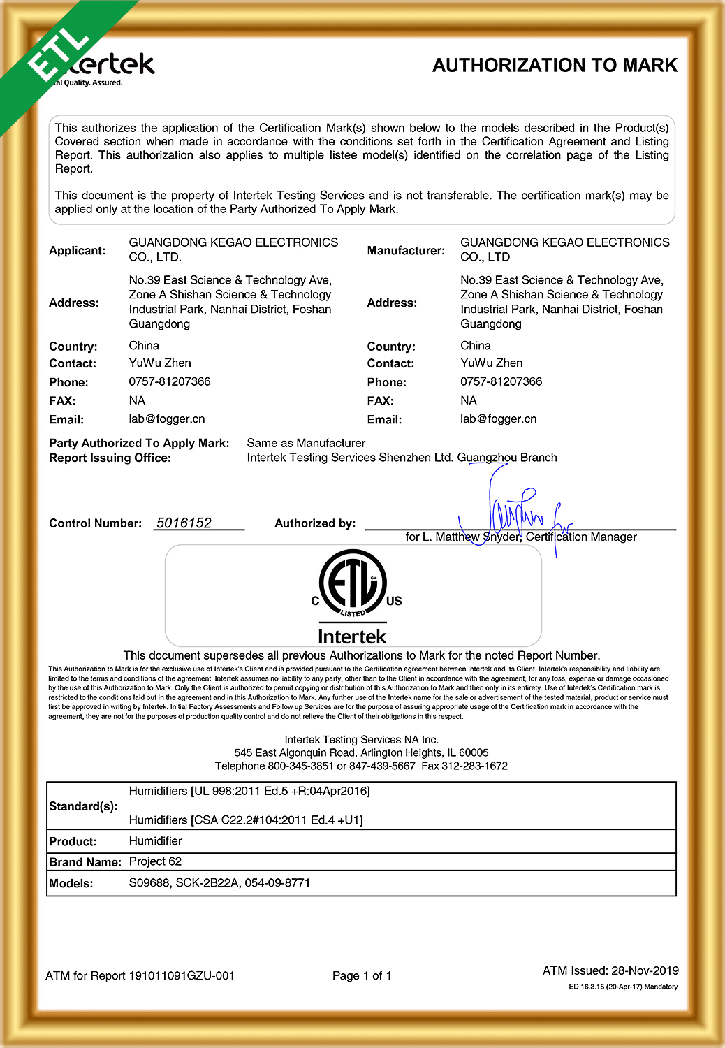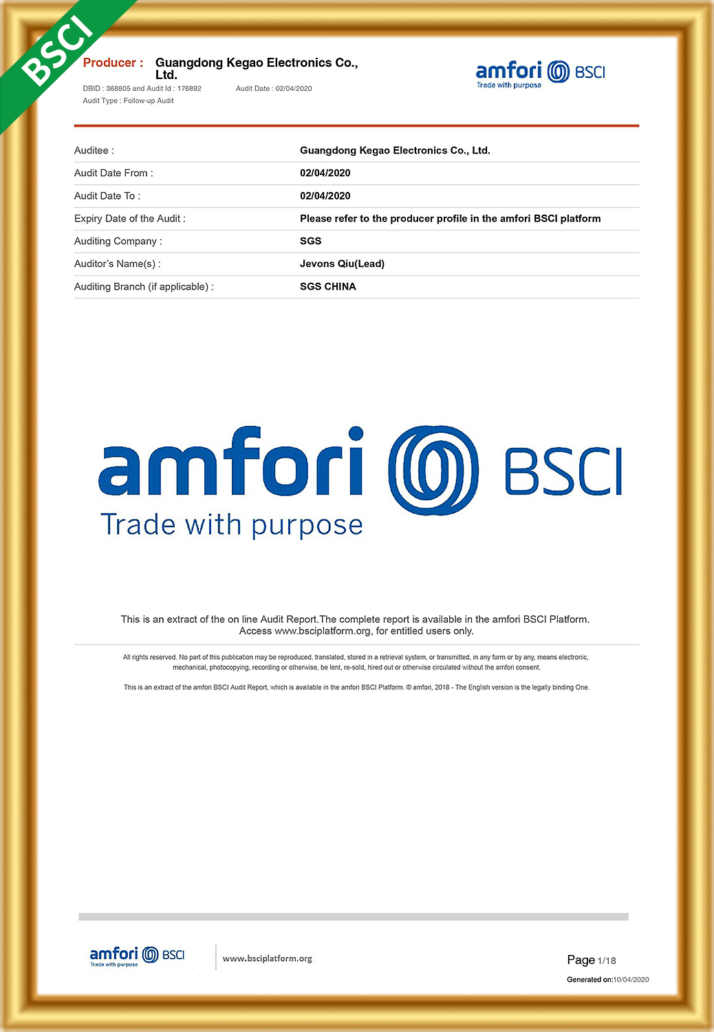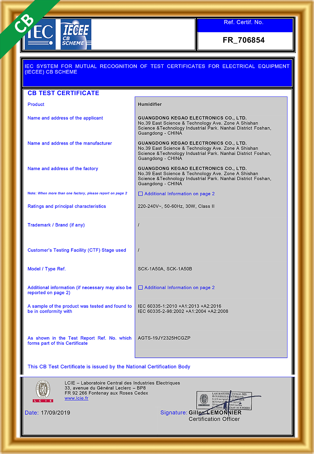 Guangdong Kegao Electronics Co., Ltd.