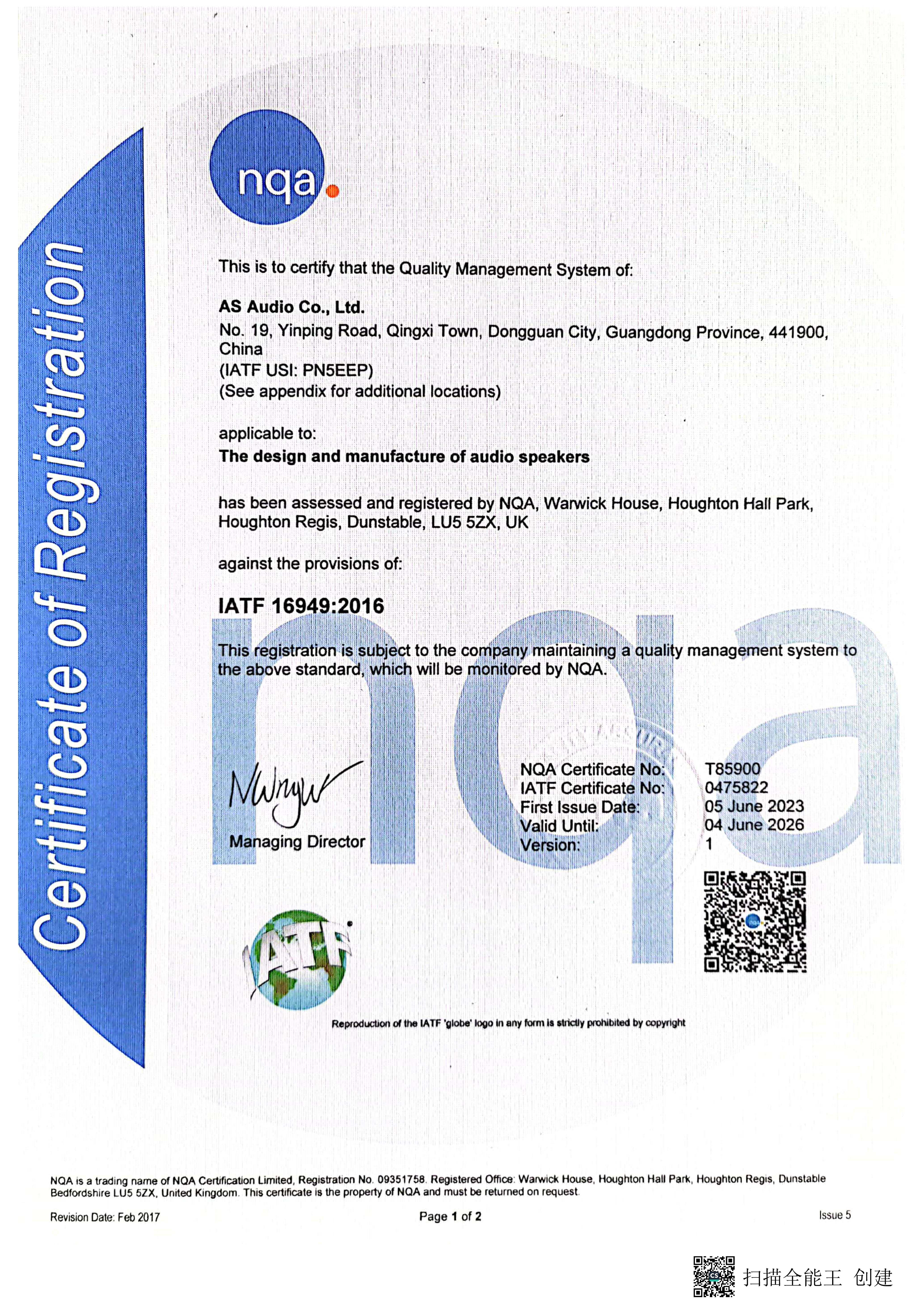 DongGuan AS AUDIO Co. Ltd.