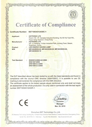 CE certificate for LED lamp