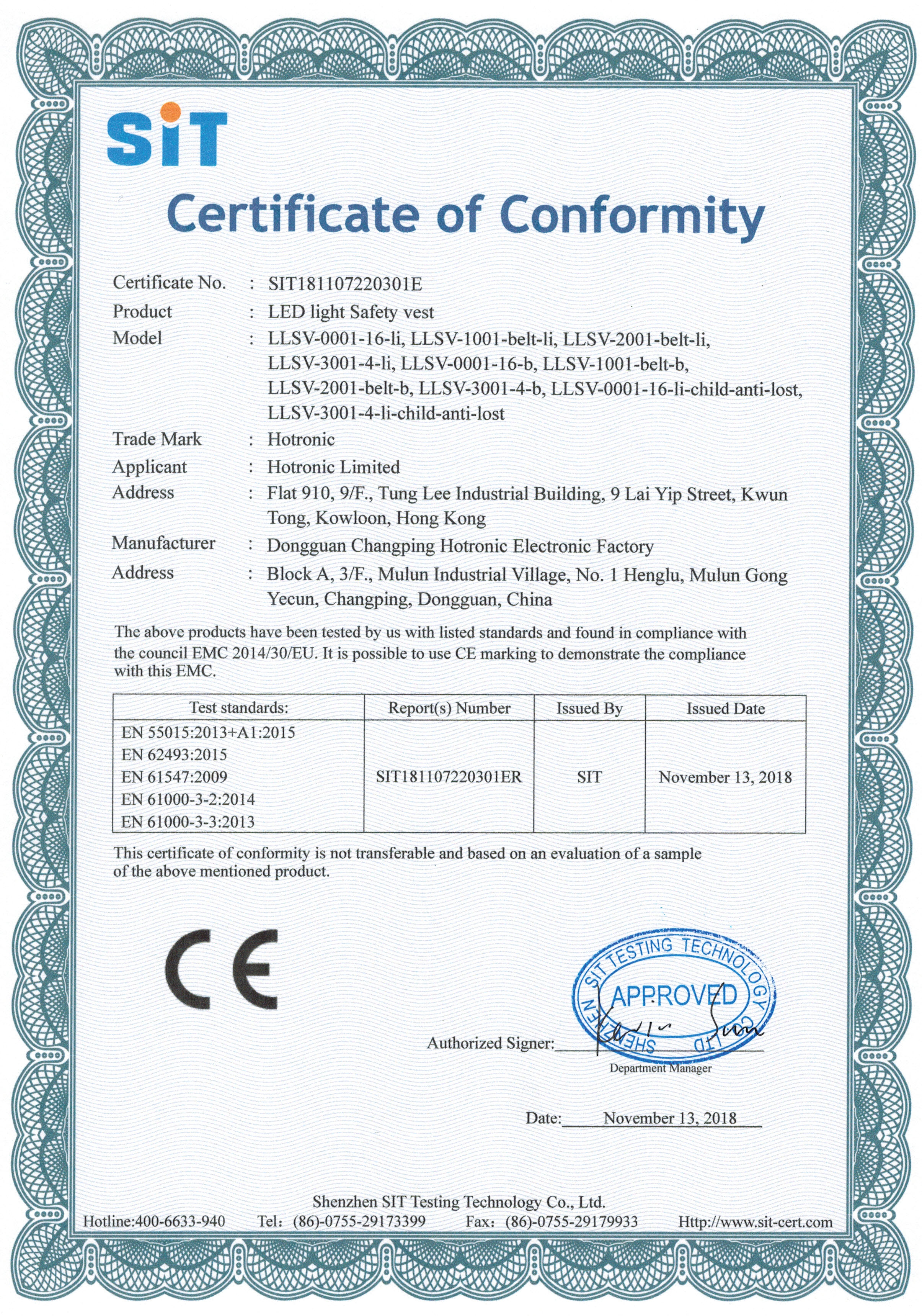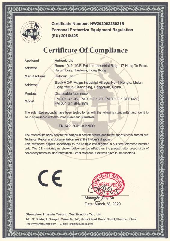 Certificate of Conformity: CE