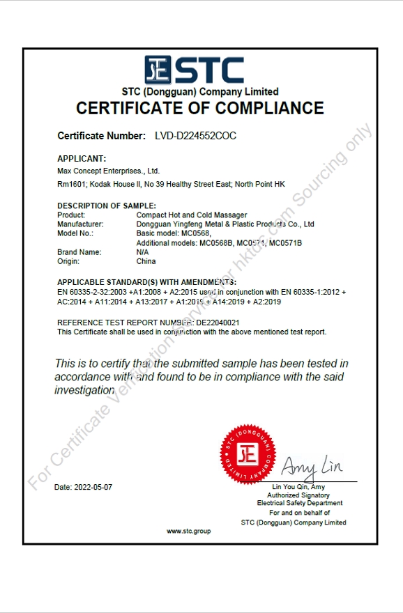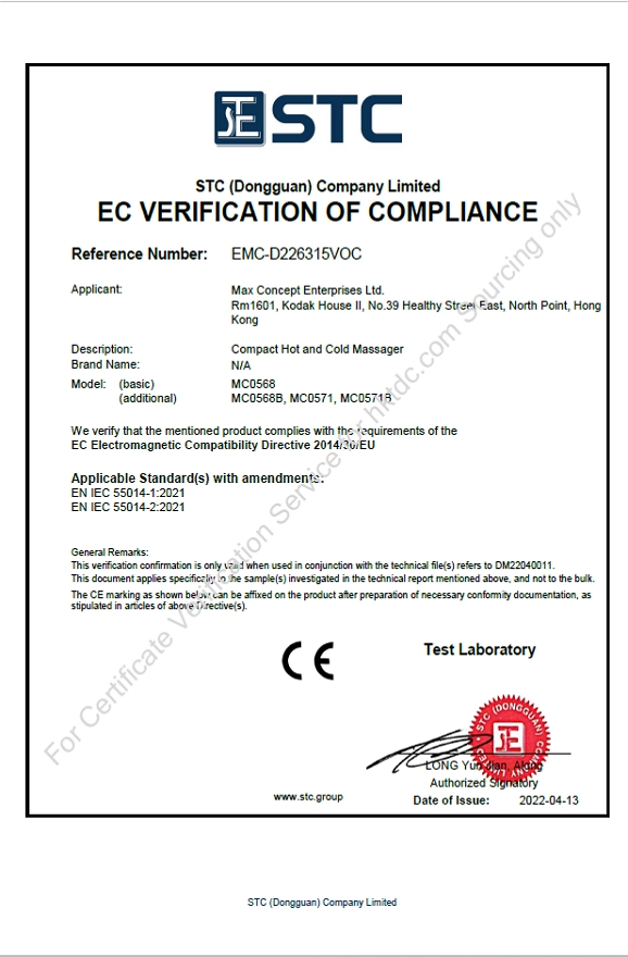 CE VERIFICATION OF COMPLIANCE