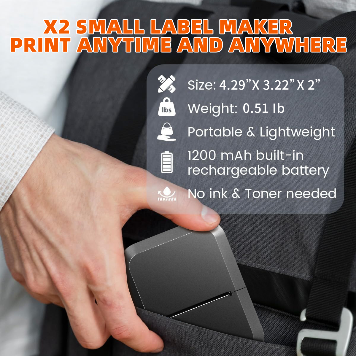 Marklife X2 Black Mini Label Printer Wireless Thermal Label Printer Label Maker